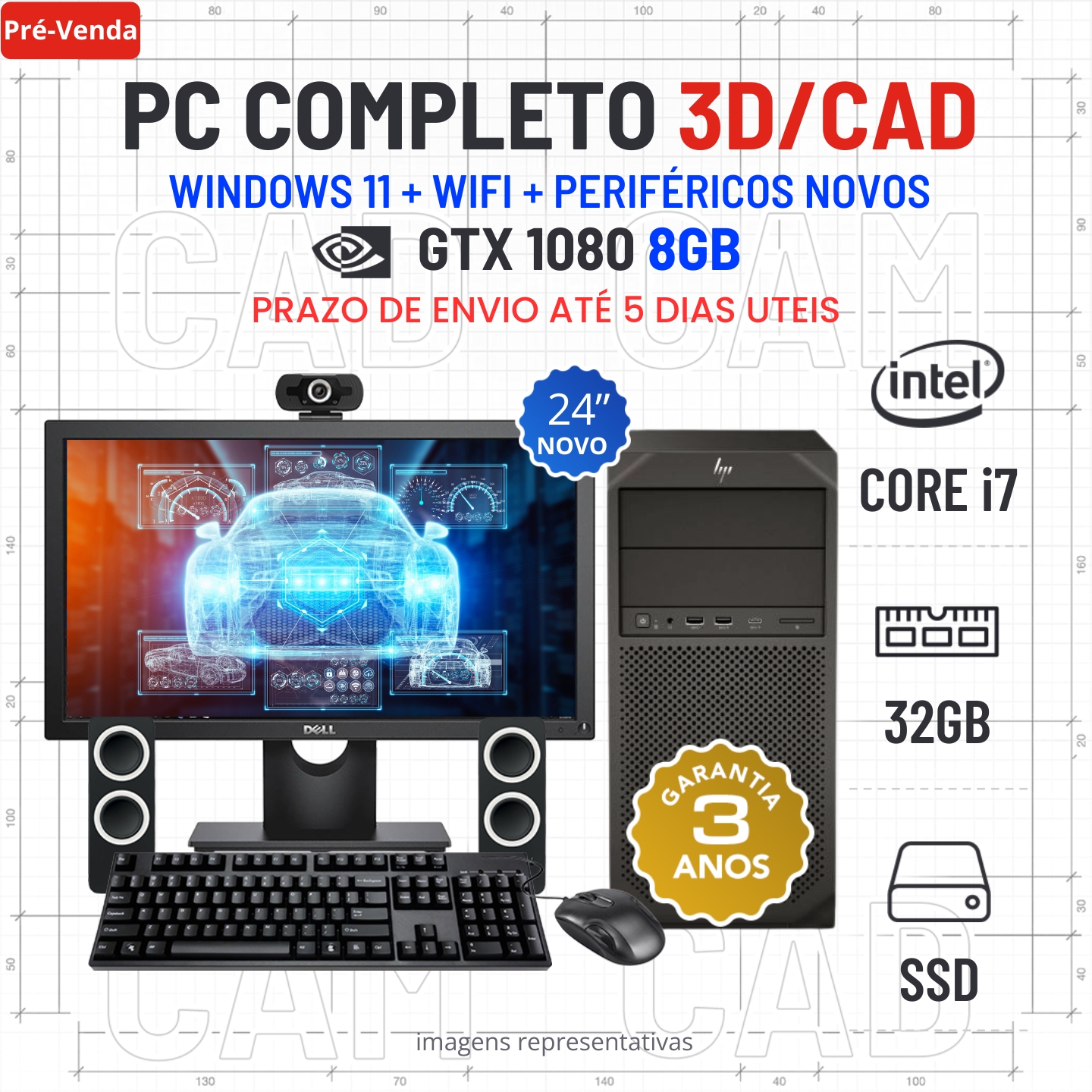 CONJUNTO 3D/CAD HP Z2 G4 TOWER | i7-9700 | 32GB RAM | 480GB SSD | GTX1080-8GB COM MONITOR + ACESSORIOSEstado Grau A. Sem qualquer tipo de danos. Somente com ligeiros indicios de uso