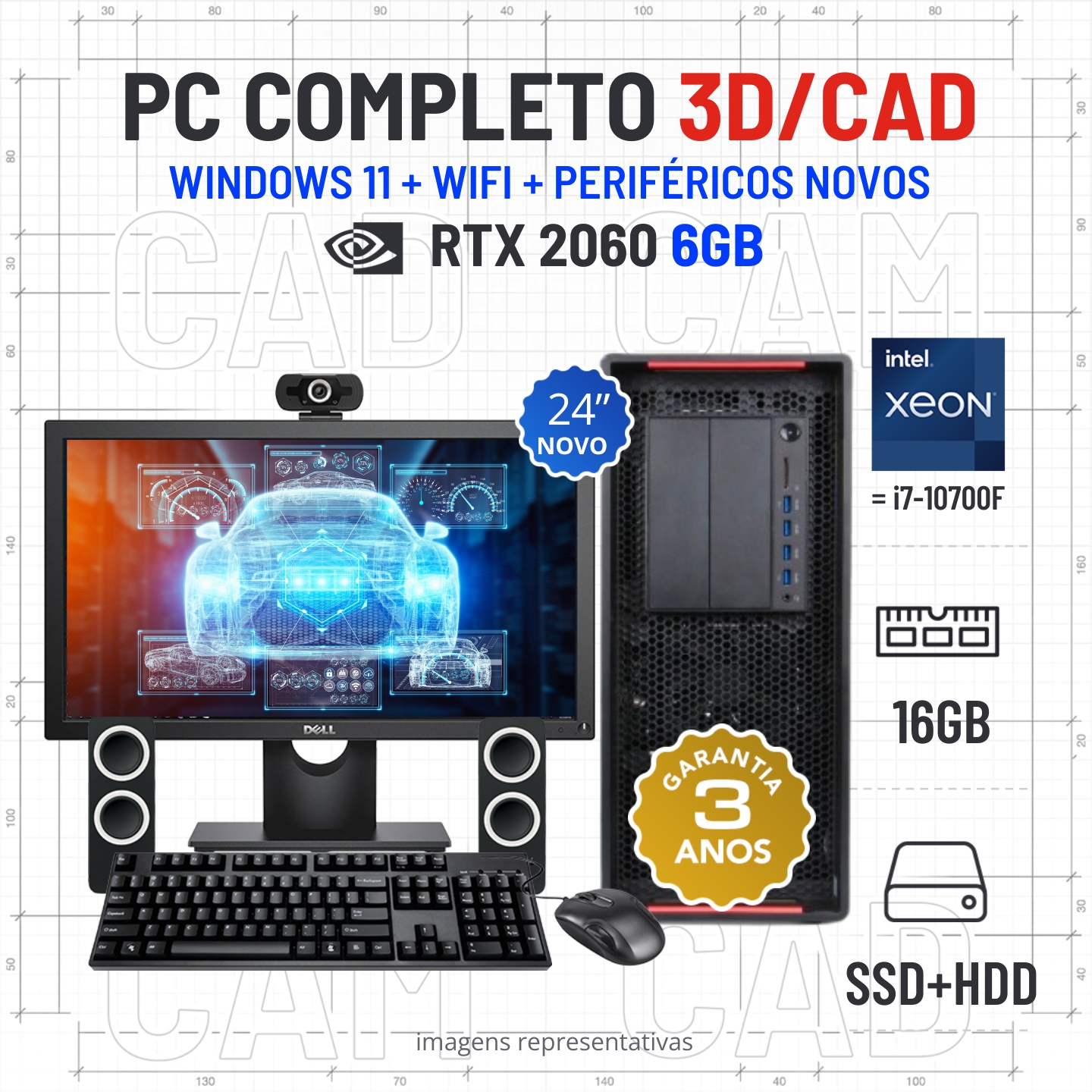 CONJUNTO 3D/CAD LENOVO P510 | XEON=i7-10700F | 16GB RAM | SSD + HDD | RTX2060-6GB COM MONITOR + ACESSORIOS