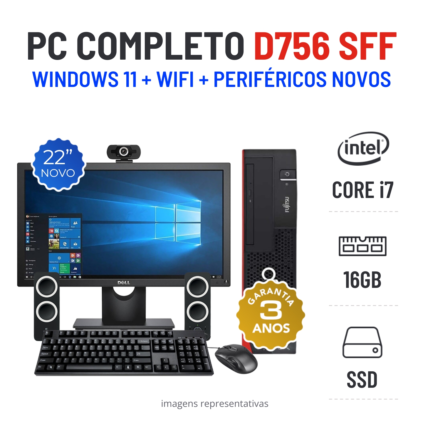 CONJUNTO FUJITSU ESPRIMO D756 SFF | i7-6700 | 16GB RAM | 480GB SSD COM MONITOR + ACESSORIOS