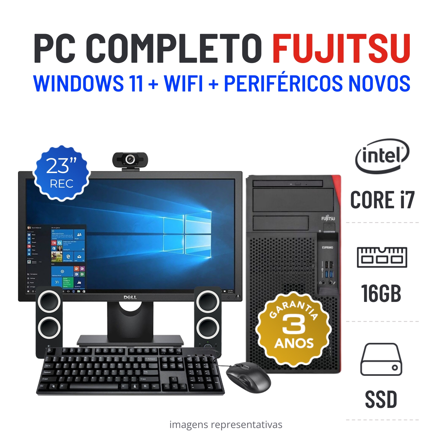 CONJUNTO FUJITSU ESPRIMO P758 | i7-9700 | 16GB RAM | 240GB SSD COM MONITOR + ACESSORIOS