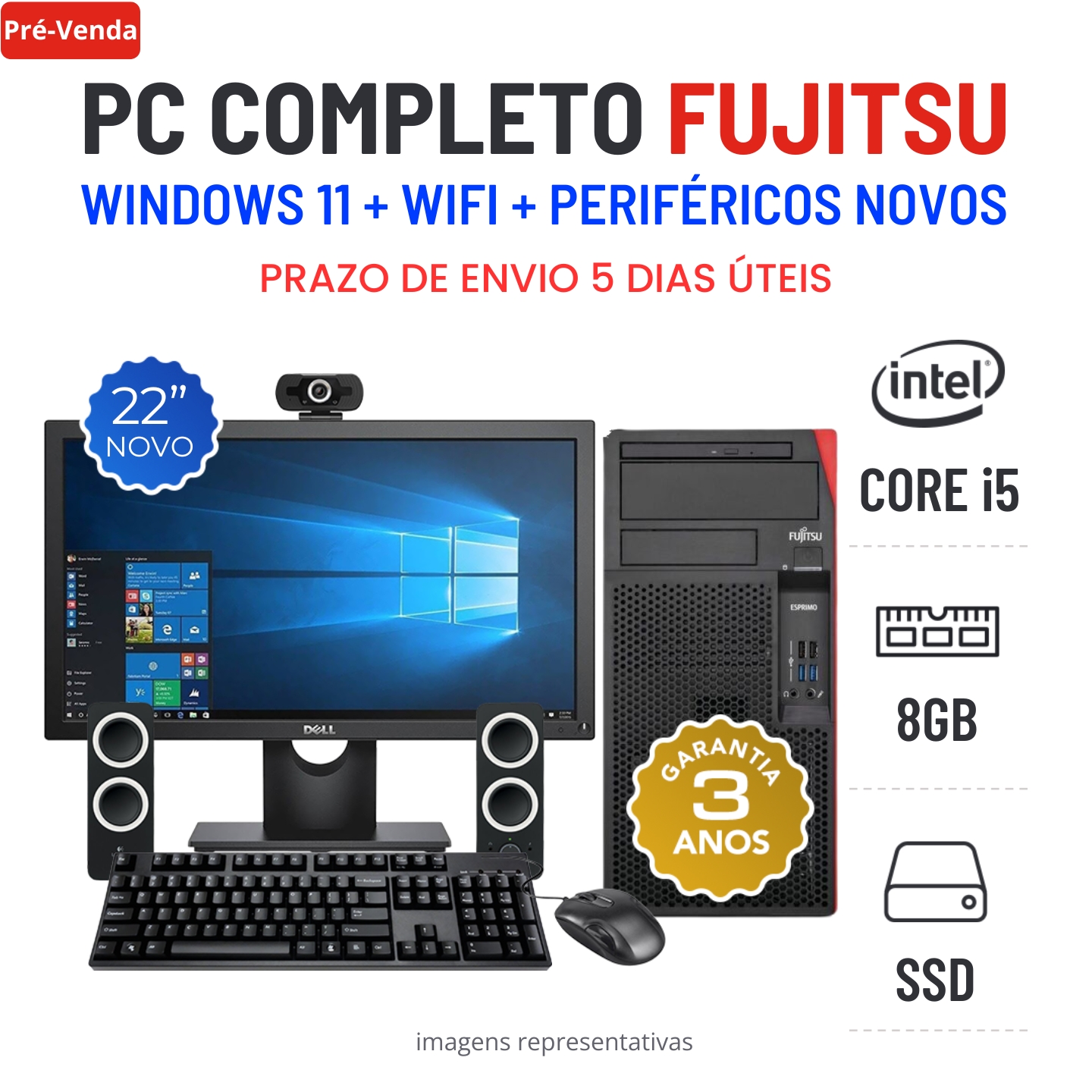 CONJUNTO FUJITSU ESPRIMO P958 | i5-8400 | 8GB RAM | 240GB SSD COM MONITOR + ACESSORIOSEstado Grau A. Funciona como Novo. Recondicionado sem qualquer tipo de danos. Somente com ligeiros indicios de uso