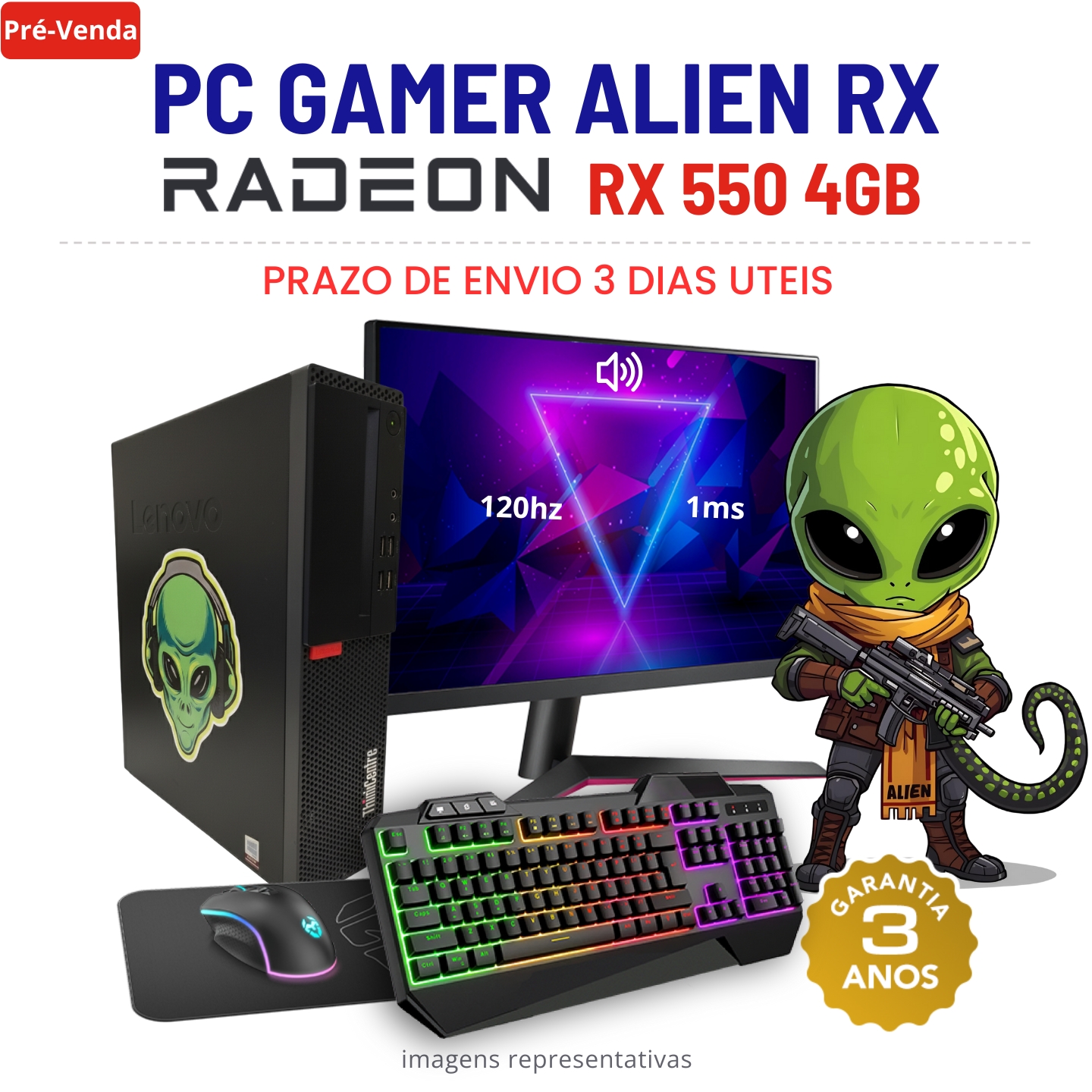 CONJUNTO GAMER ALIEN RX | RX550-4GB | RYZEN 5 PRO=I7-7700 | 16GB RAM | 240GB SSD COM MONITOR + ACESSORIOS