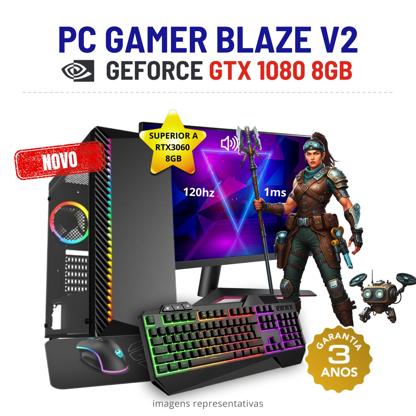 CONJUNTO GAMER BLAZE V2 | GTX1080-8GB SUPERIOR A RTX3060-8GB | i5-12GEN=i7-10700KF | 32GB RAM | 480GB SSD COM MONITOR + ACESSORIOS