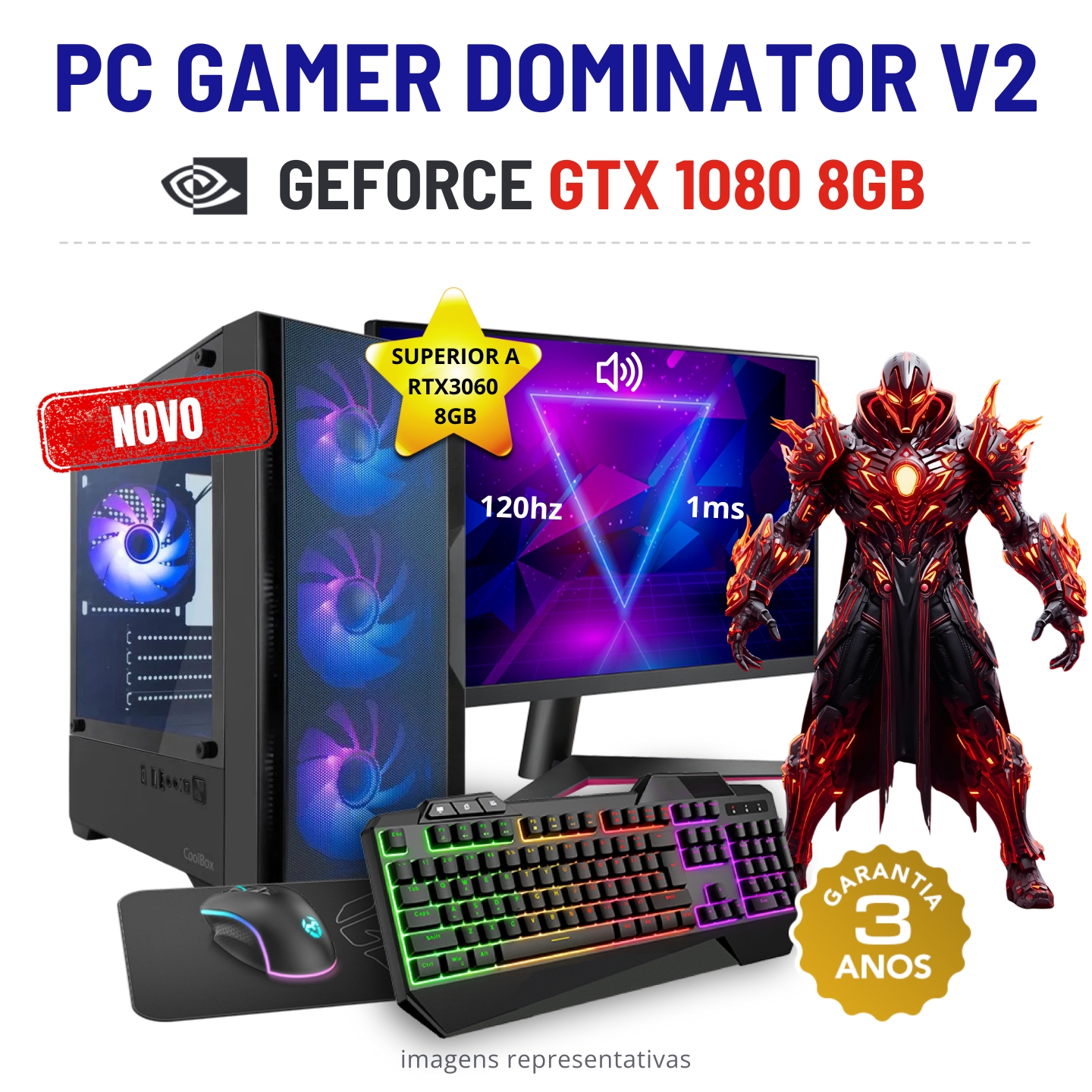 CONJUNTO GAMER DOMINATOR V2 | GTX1080-8GB SUPERIOR A RTX3060-8GB | RYZEN 5 = i7-10700K | 32GB RAM | 960GB SSD COM MONITOR + ACESSORIOSNovo com 3 Anos de Garantia