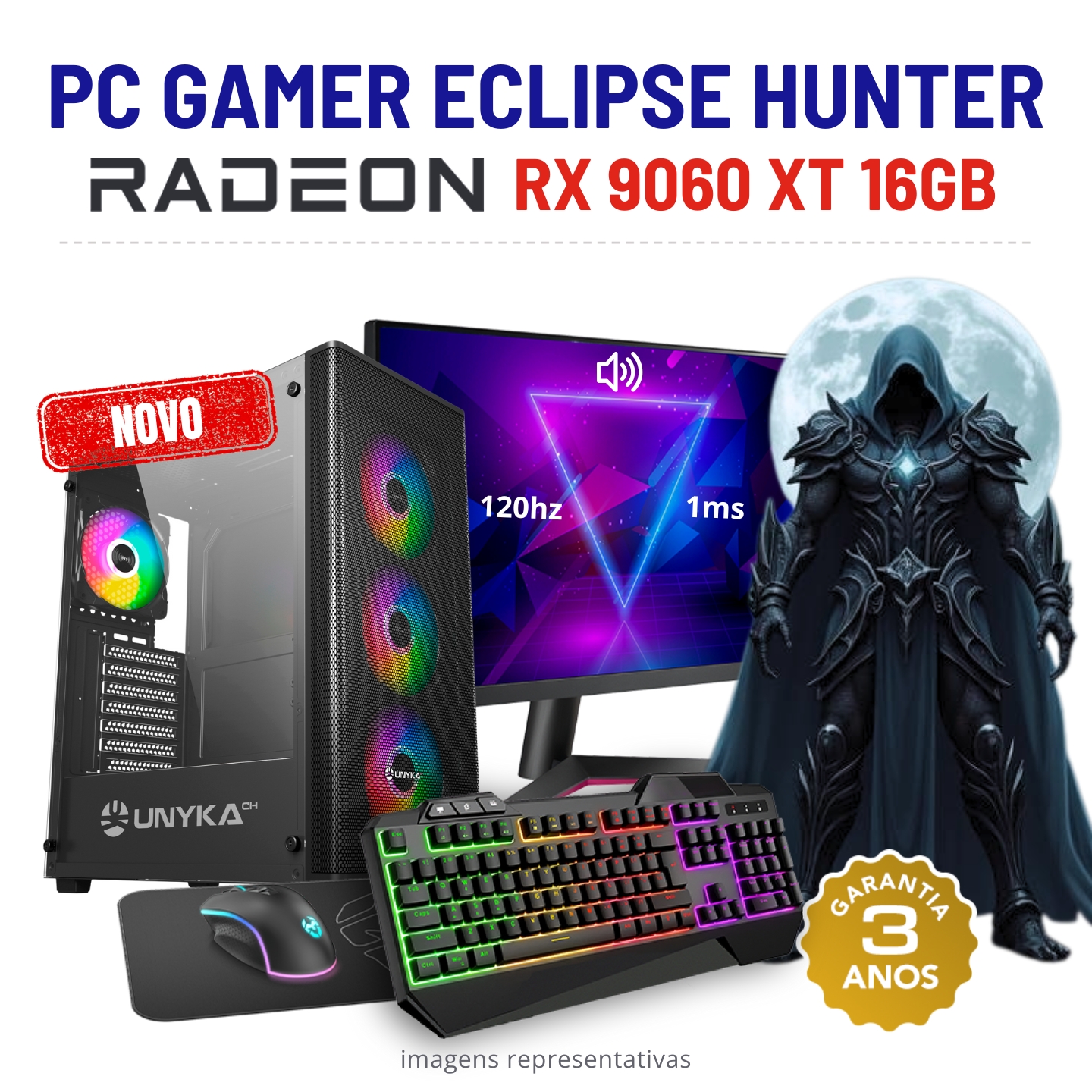 CONJUNTO GAMER ECLIPSE HUNTER NOVO | RX9060XT-16GB | i5-14GEN=i7-11700K | 32GB RAM | 960GB SSD COM MONITOR + ACESSORIOS