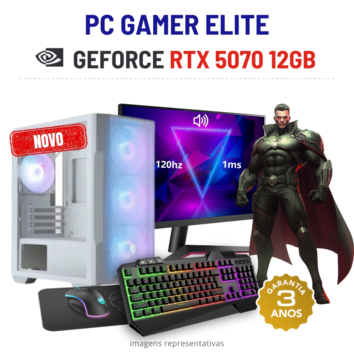 CONJUNTO GAMER ELITE NOVO | RTX5070-12GB | i5-14400F | 32GB RAM | 960GB SSD COM MONITOR + ACESSORIOS