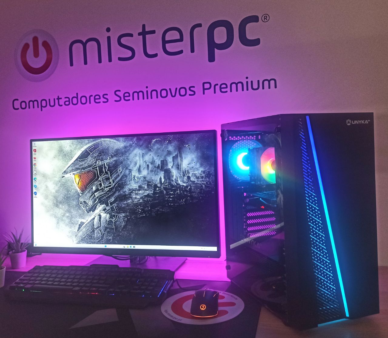 CONJUNTO GAMER GAMMA | RX560-4GB | XEON=I7-7700 | 16GB RAM | 240GB SSD COM MONITOR + ACESSORIOSEstado Grau A. Sem qualquer tipo de danos. Somente com ligeiros indicios de uso