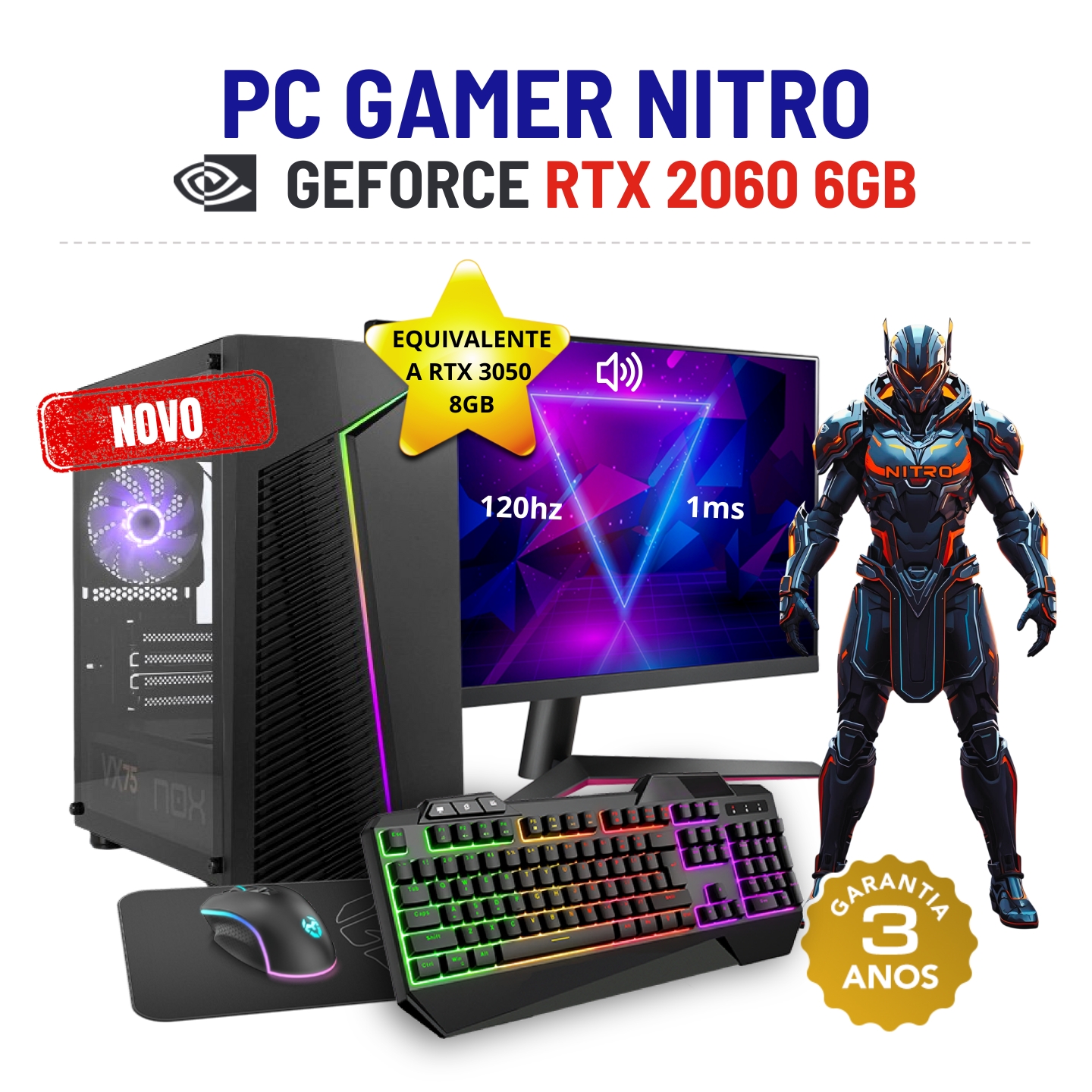 CONJUNTO GAMER NITRO | RTX2060-6GB SUPERIOR A RTX3050-8GB | i3-12GEN=I7-9700 | 16GB RAM | 480GB SSD COM MONITOR + ACESSORIOSNovo com 3 Anos de Garantia