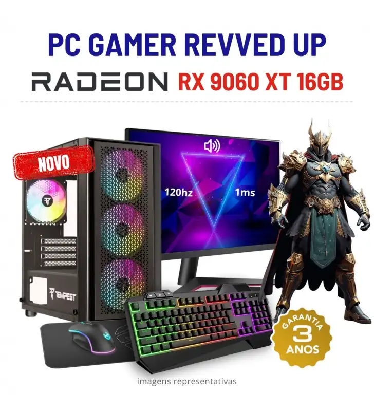 CONJUNTO GAMER REVVED UP NOVO | RX9060XT-16GB | RYZEN 5 = i7-11700 | 16GB RAM | 960GB SSD COM MONITOR + ACESSORIOSNovo com 3 Anos de Garantia