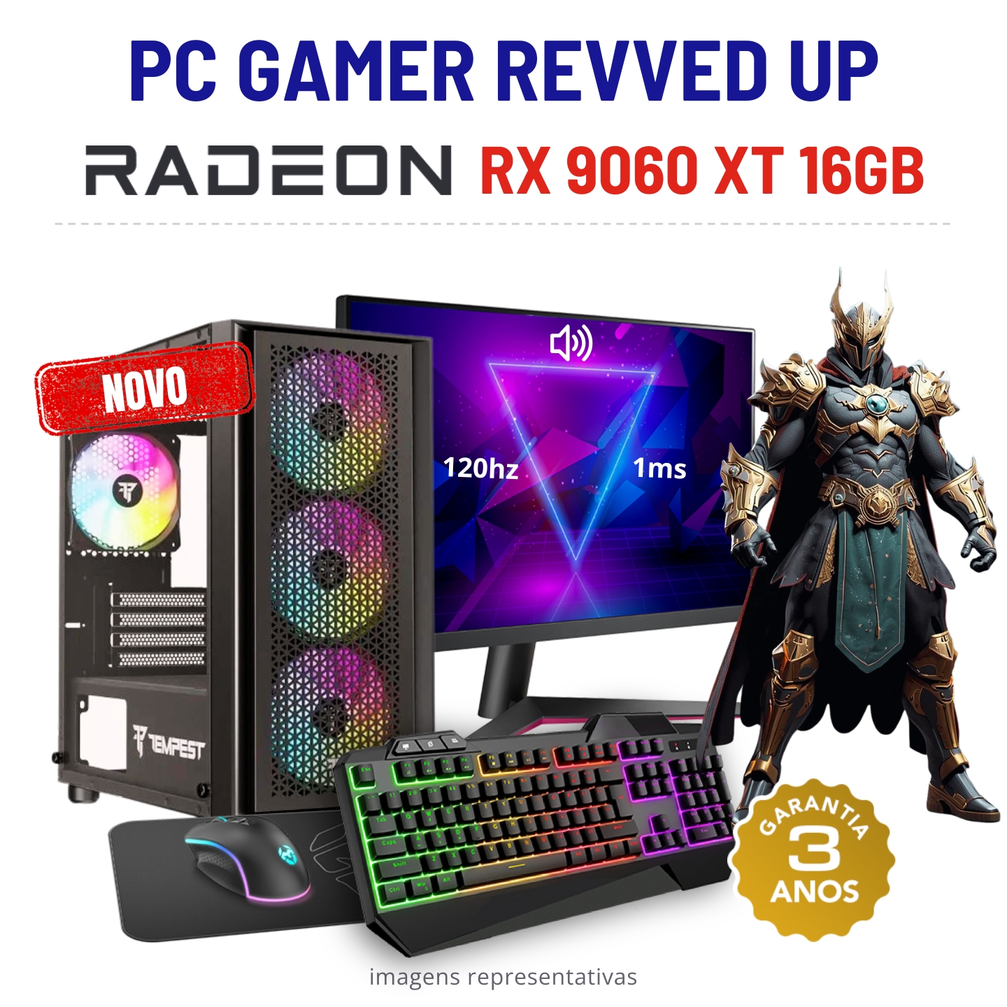 CONJUNTO GAMER REVVED UP NOVO | RX9060XT-16GB | RYZEN 5 = i7-11700 | 16GB RAM | 960GB SSD COM MONITOR + ACESSORIOS