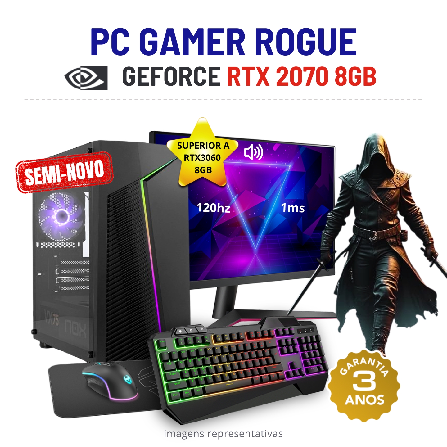 CONJUNTO GAMER ROGUE SEMI-NOVO | RTX2070-8GB SUPERIOR RTX3060-8GB | RYZEN 5 = i7-10700K | 16GB RAM | 960GB SSD COM MONITOR + ACESSORIOS