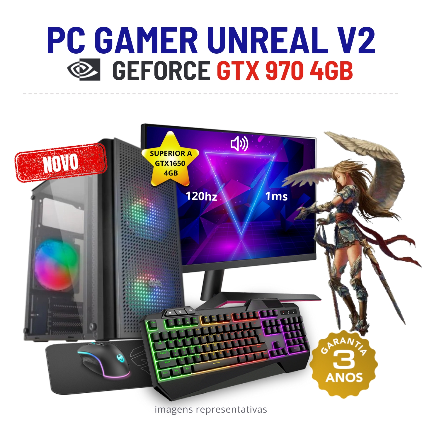 CONJUNTO GAMER UNREAL V2 | GTX970-4GB SUPERIOR A GTX1650-4GB | RYZEN 3 = i7-7700K | 16GB RAM | 240GB SSD COM MONITOR + ACESSORIOSNovo com 3 Anos de Garantia