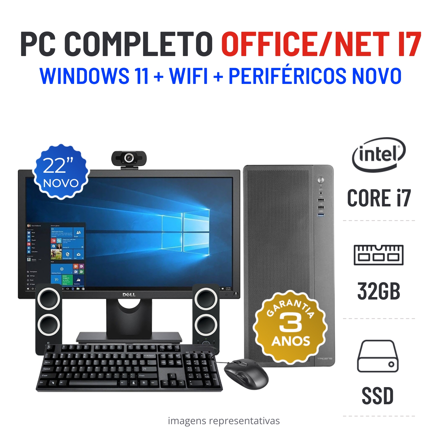 CONJUNTO NOVO OFFICE/NET i7 | i7-12700KF | 32GB RAM | 480GB SSD COM MONITOR + ACESSORIOS