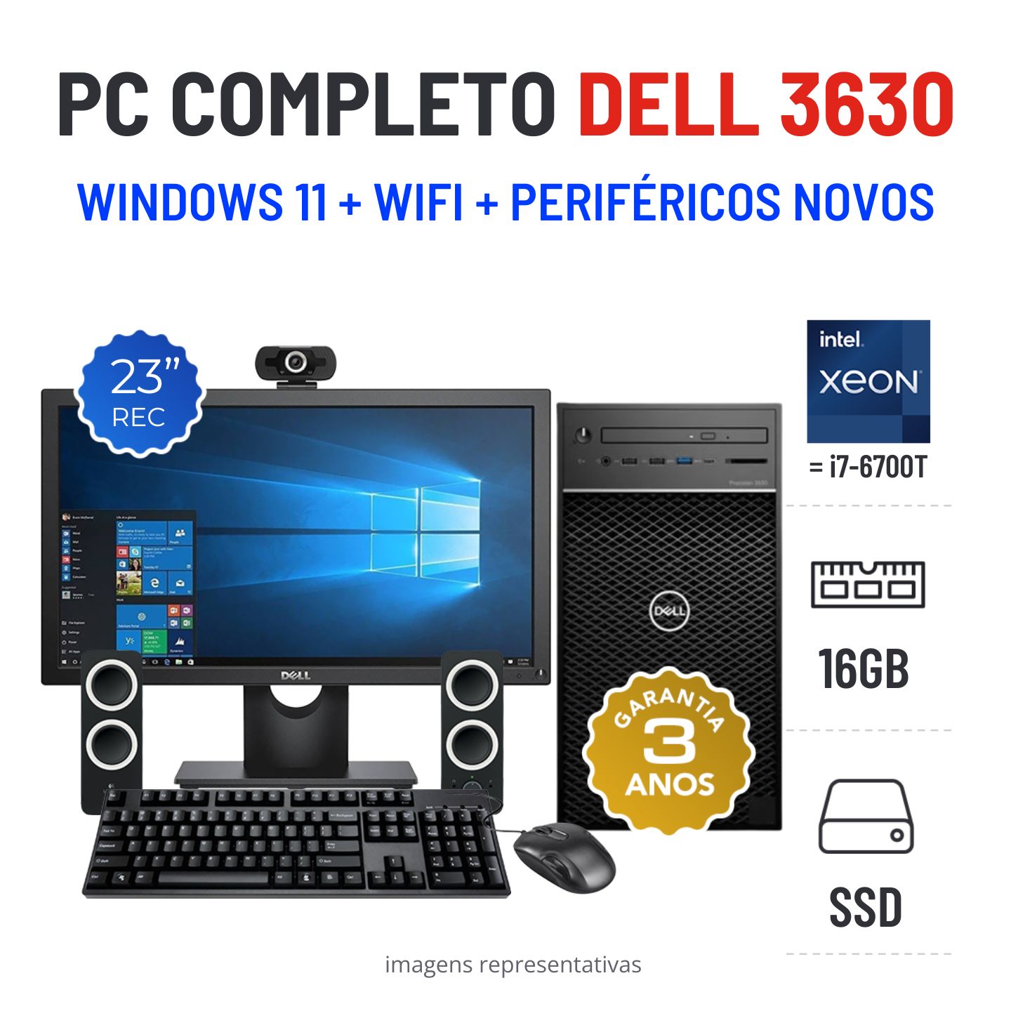 CONJUNTO PC DELL PRECISION 3630 TOWER | XEON = i7-6700T | 16GB RAM | 240GB SSD COM MONITOR + ACESSORIOS