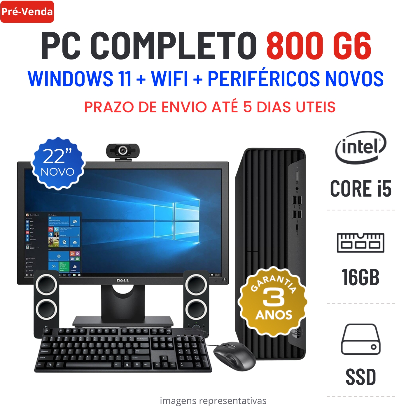 CONJUNTO PC HP 800 G6 SFF | i5-10500 | 16GB RAM | 240GB SSD COM MONITOR + ACESSORIOS