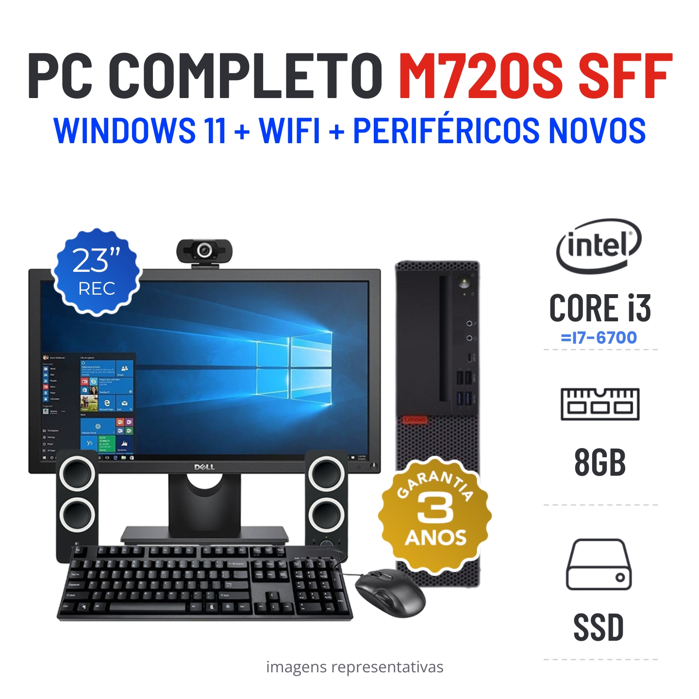 CONJUNTO PC LENOVO M720S SFF | i3-8GEN=i7-6700 | 8GB RAM | SSD COM MONITOR + ACESSORIOS