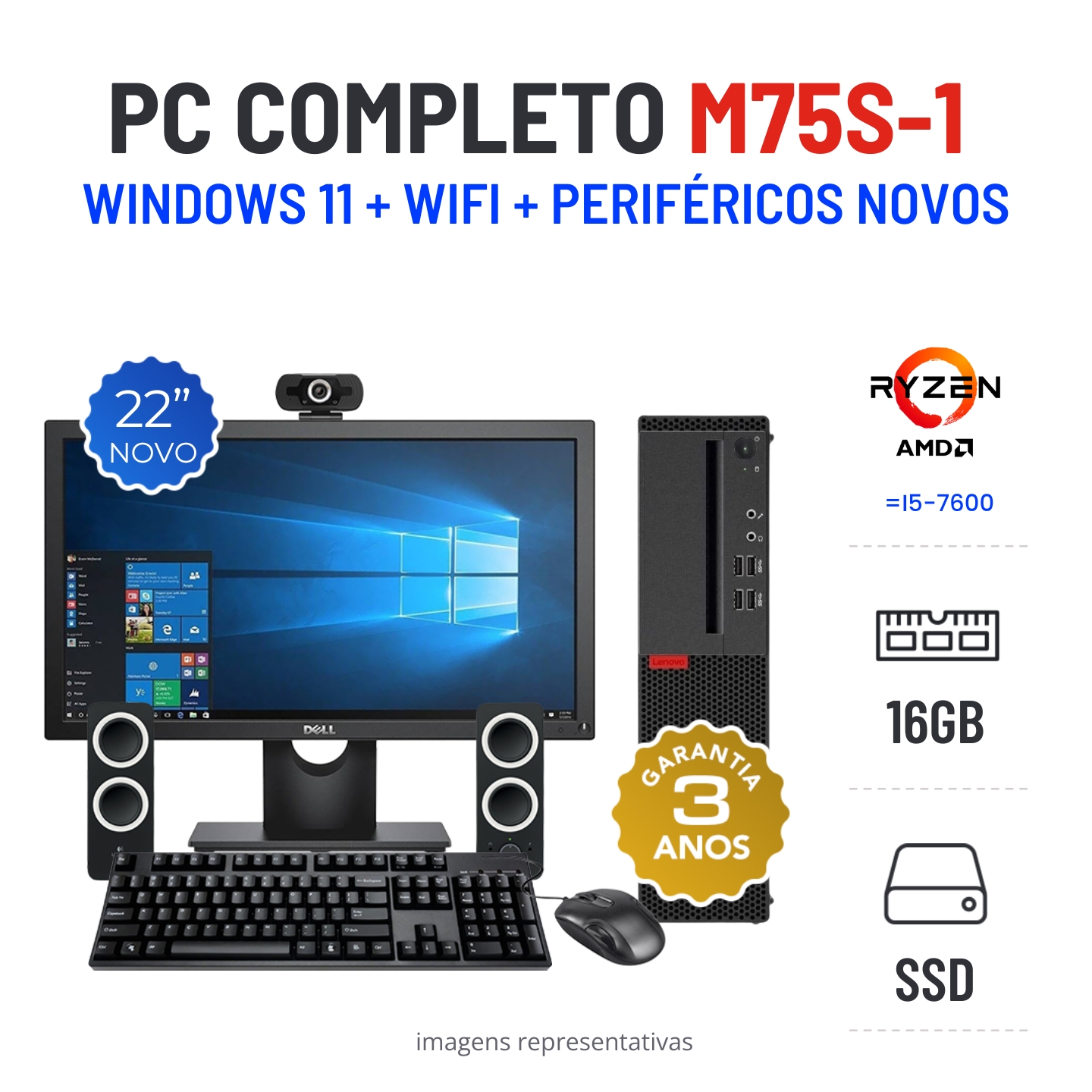 CONJUNTO PC LENOVO M75S-1 SFF | RYZEN 3 PRO = i5-7600 | 16GB RAM | 240GB SSD COM MONITOR + ACESSORIOS