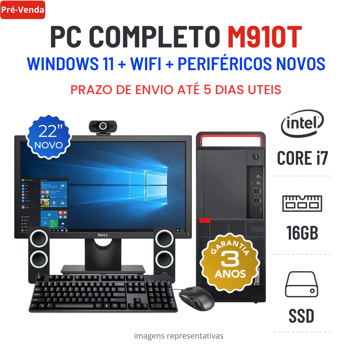 CONJUNTO PC LENOVO M910T TOWER | i7-6700 | 16GB RAM | 240GB SSD COM MONITOR + ACESSORIOS