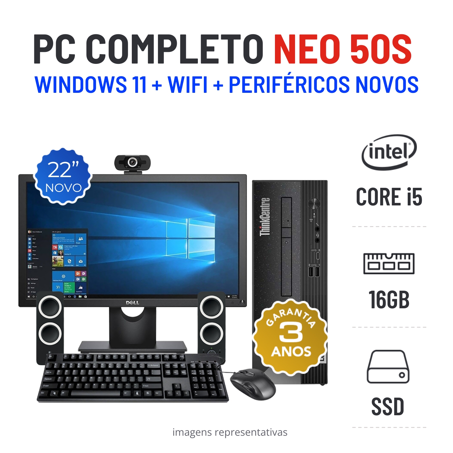 CONJUNTO PC LENOVO NEO 50S SFF | i5-12400 | 16GB RAM | 480GB SSD COM MONITOR + ACESSORIOS