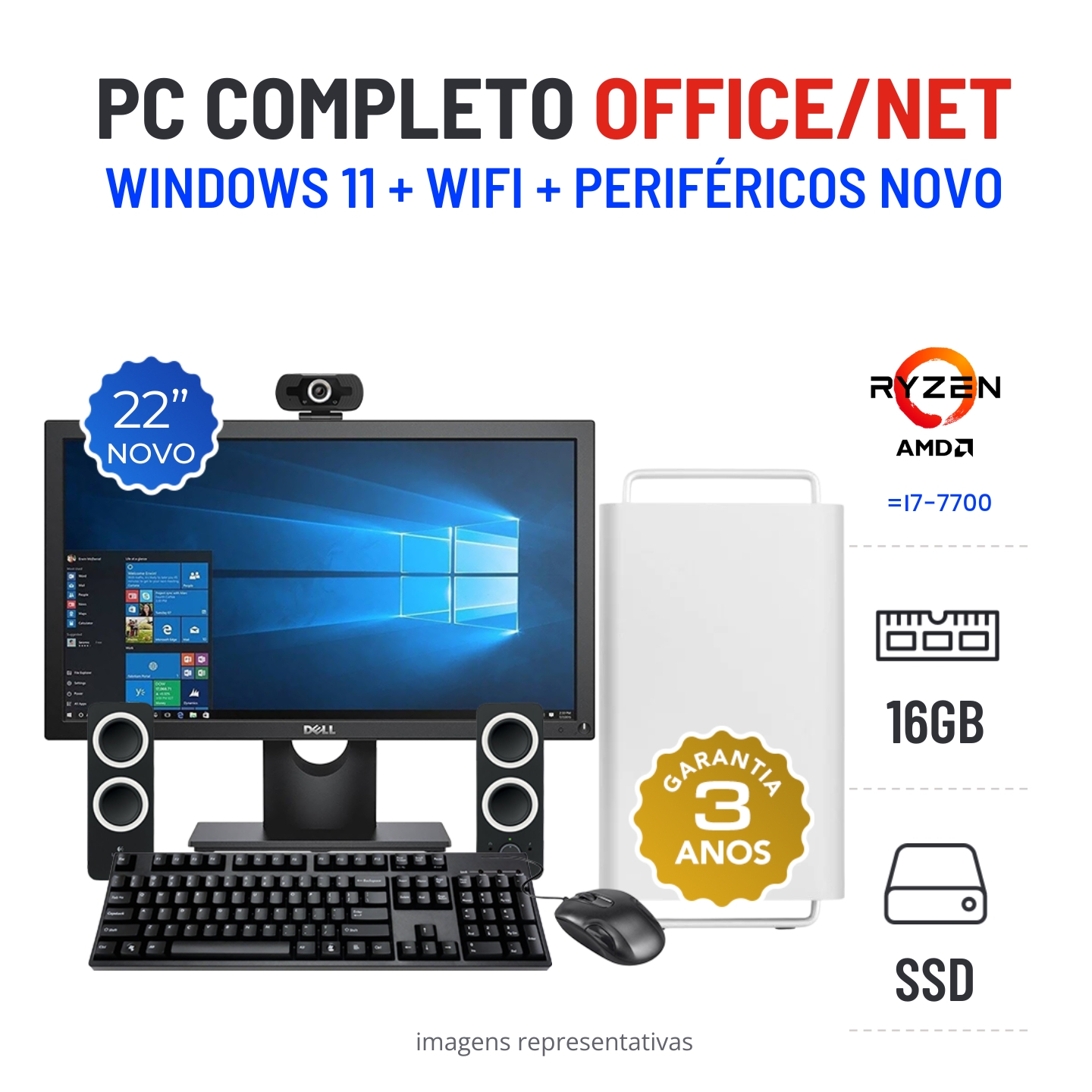 CONJUNTO PC OFFICE/NET WHITE EDITION | RYZEN 5 = i7-7700 | 16GB RAM | 240GB SSD COM MONITOR + ACESSORIOSNovo com 3 Anos de Garantia