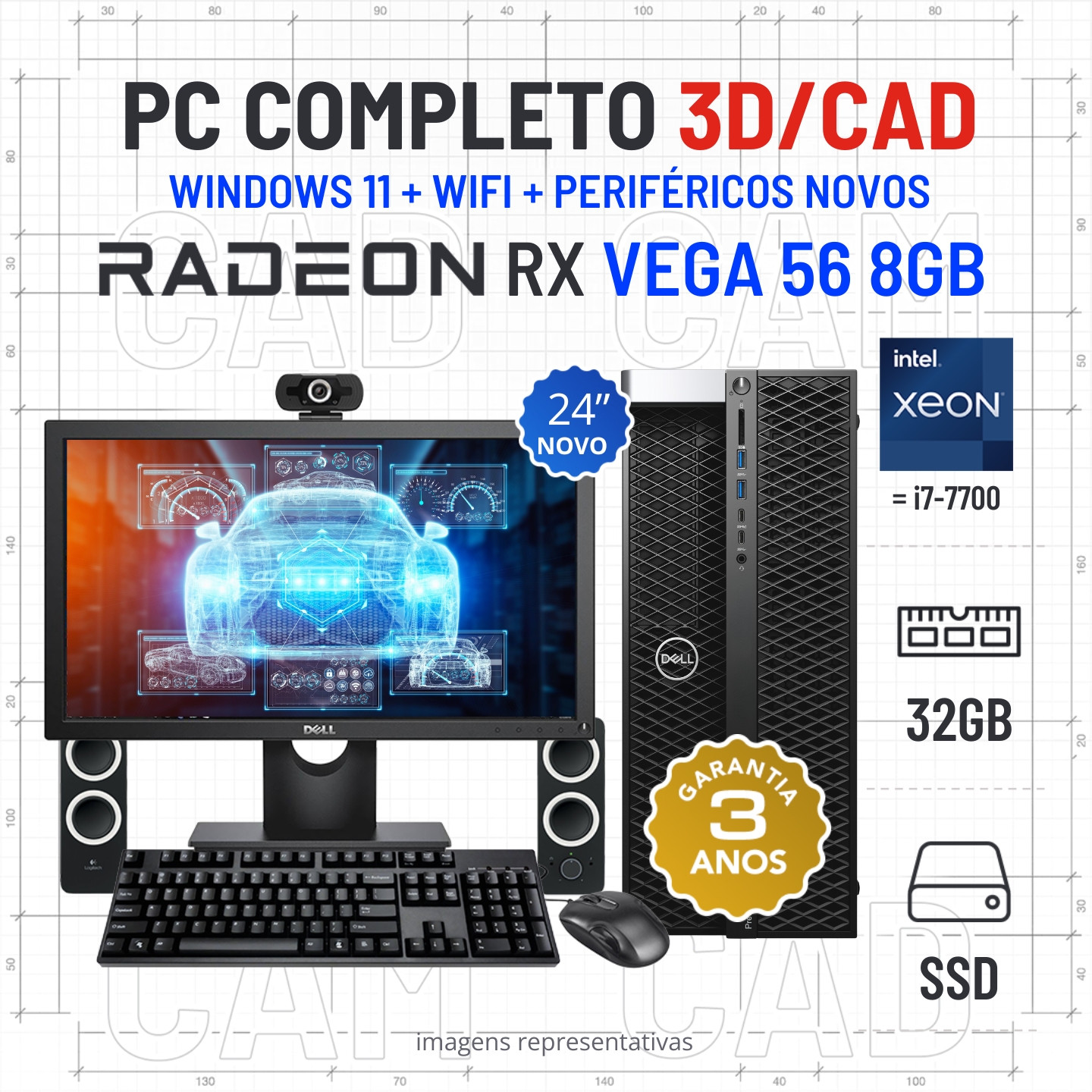 CONJUNTO WORKSTATION SHAPE CRAFT | XEON=I7-7700 | 32GB RAM | 480GB | RX VEGA 56 8GB COM MONITOR + ACESSORIOS