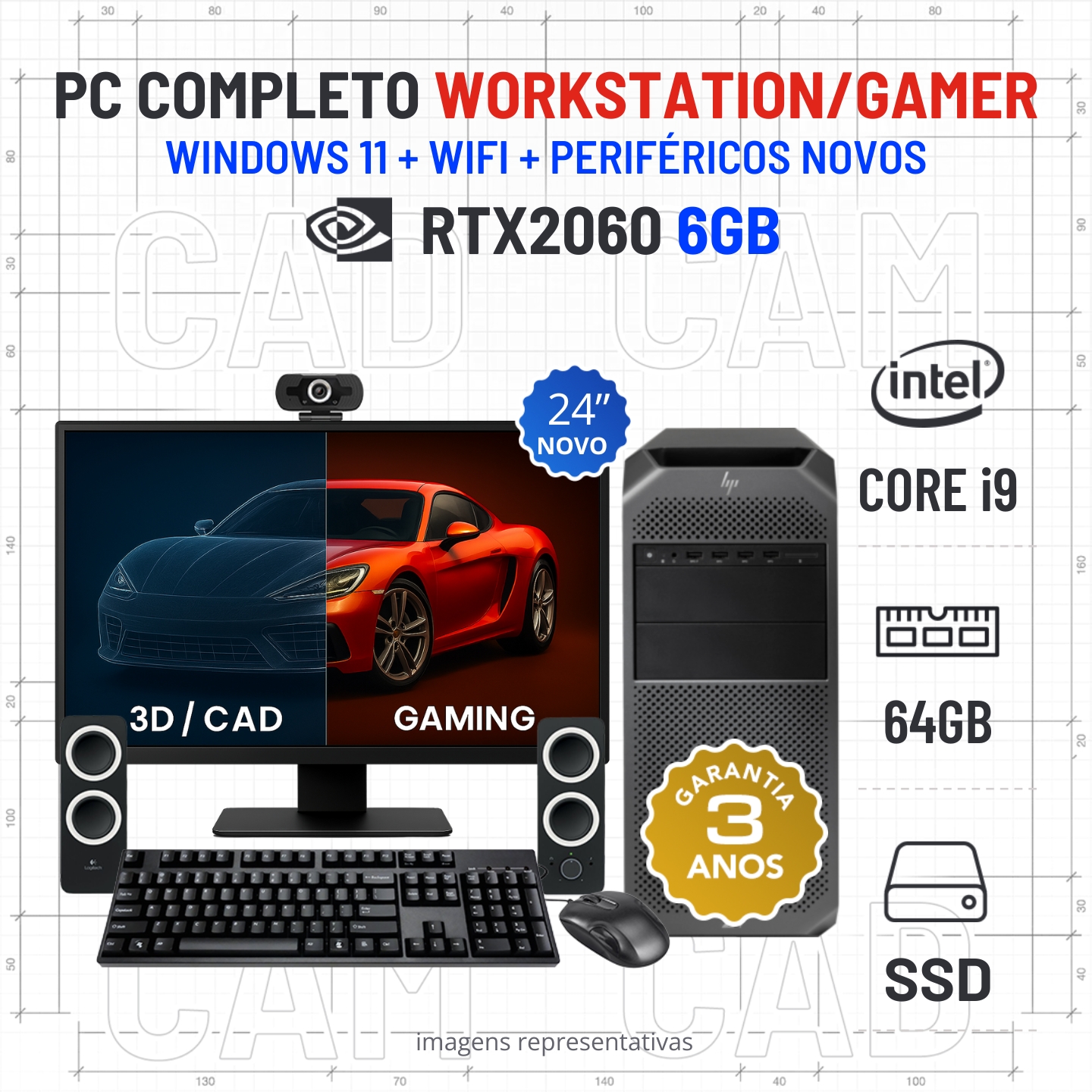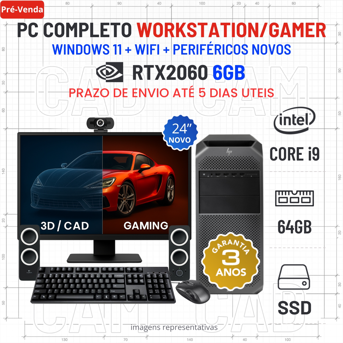 CONJUNTO WORKSTATION/GAMER TECH FRAME HP Z4 G4 | i9-7960X SUPERIOR A i9-11900K | 64GB RAM | 960GB SSD | RTX2060-6GB COM MONITOR + ACESSORIOS