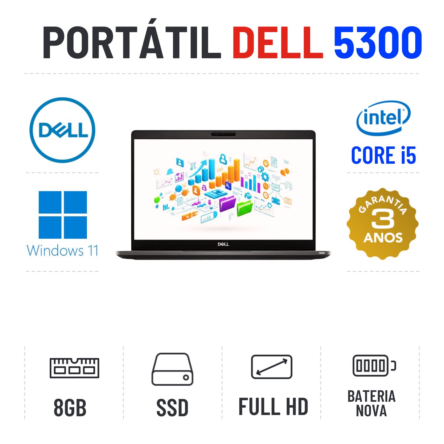 DELL LATITUDE 5300 | 13.3" FULLHD | i5-8365U | 8GB RAM | 240GB SSD | BATERIA NOVAEstado Grau A. Funciona como Novo. Recondicionado sem qualquer tipo de danos. Somente com ligeiros indicios de uso