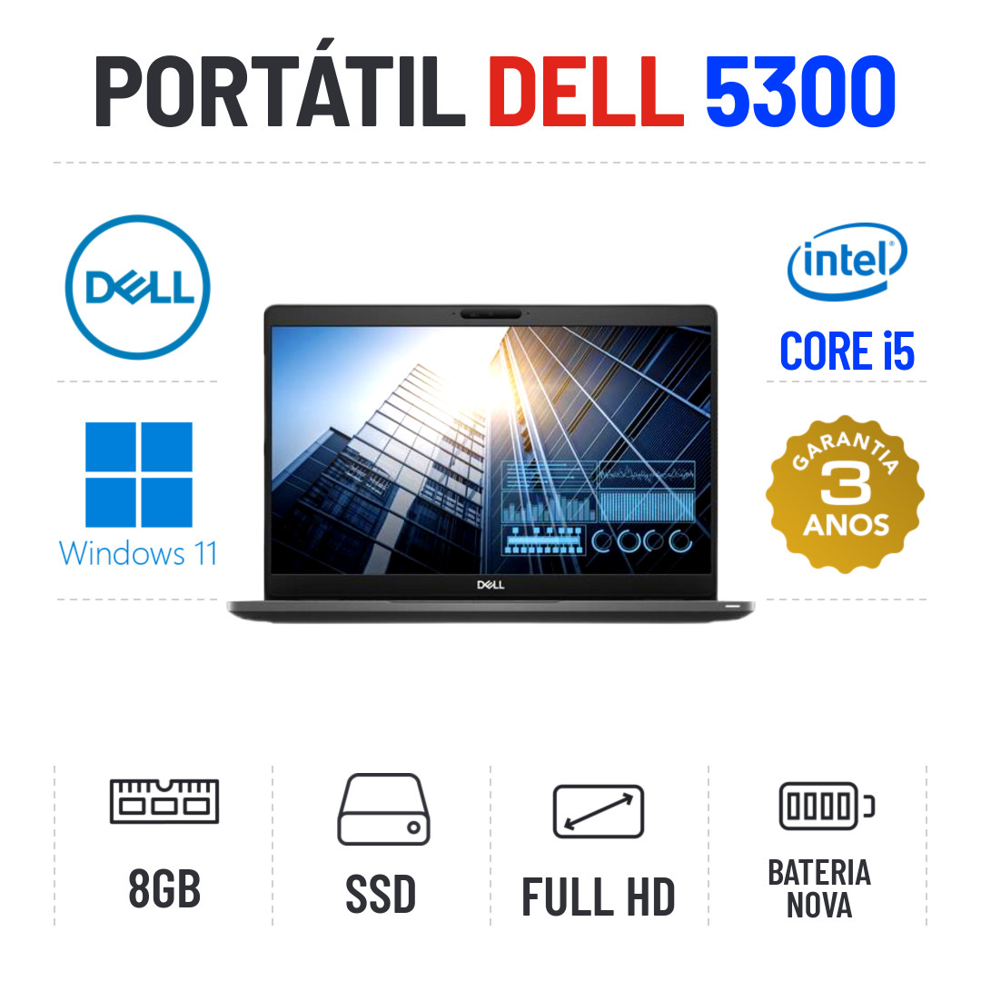DELL LATITUDE 5300 | 13.3" FULLHD | i5-8365u | 8GB RAM | 240GB SSD | BATERIA NOVAEstado Grau A. Sem qualquer tipo de danos. Somente com ligeiros indicios de uso