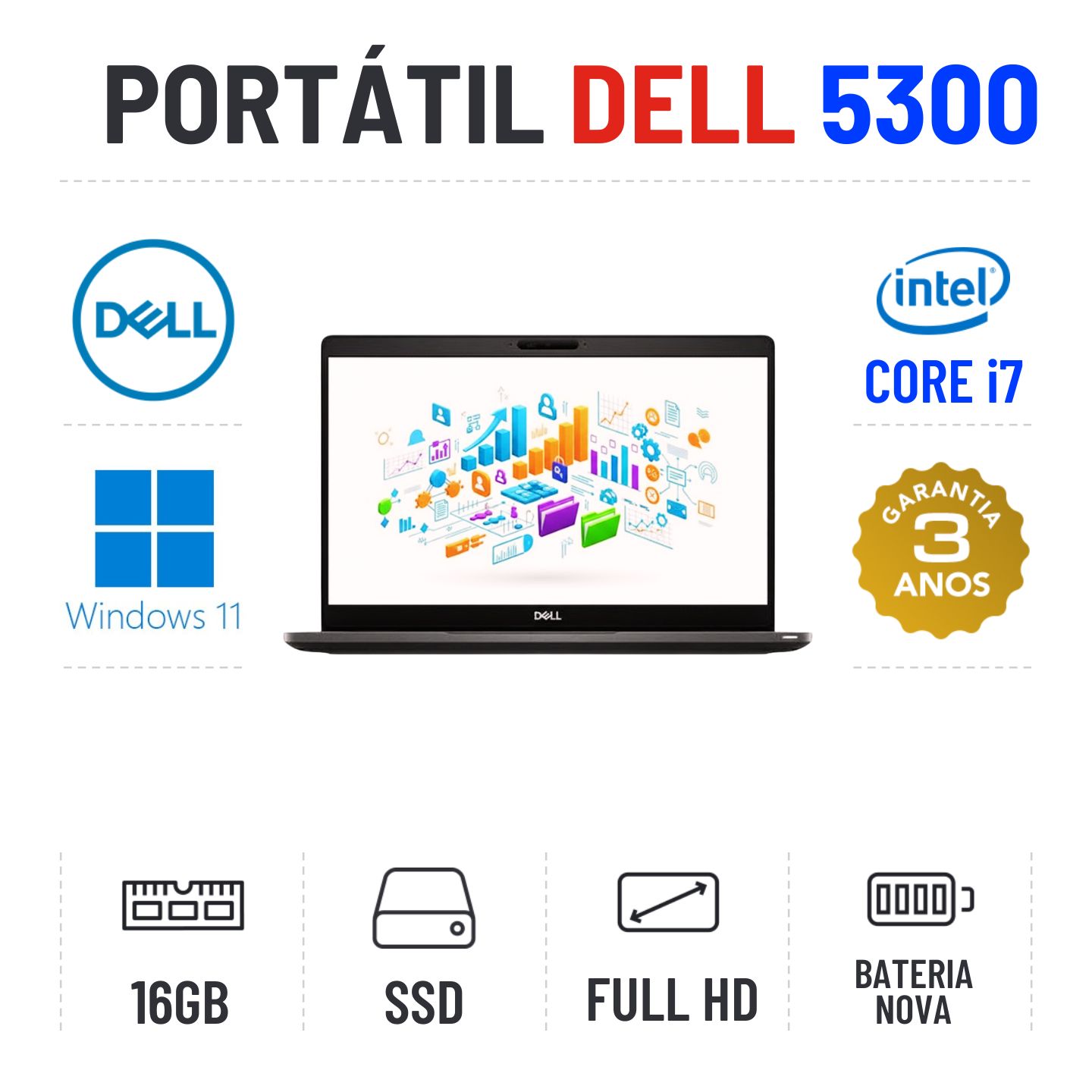 DELL LATITUDE 5300 | 13.3" FULLHD | i7-8665u | 16GB RAM | 480GB SSD | BATERIA NOVAEstado Grau A. Sem qualquer tipo de danos. Somente com ligeiros indicios de uso