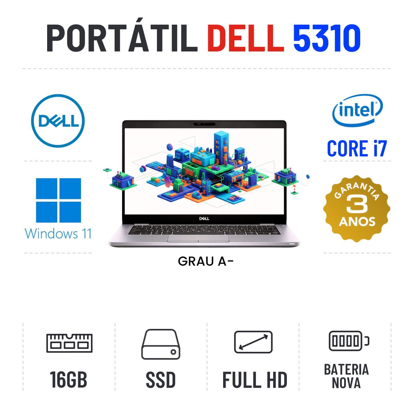DELL LATITUDE 5310 | 13.3" FULLHD | I7-10610U | 16GB RAM | 240GB SSD | BATERIA NOVAGrau A menos - Apontamentos estéticos ligeiros - 100% funcional