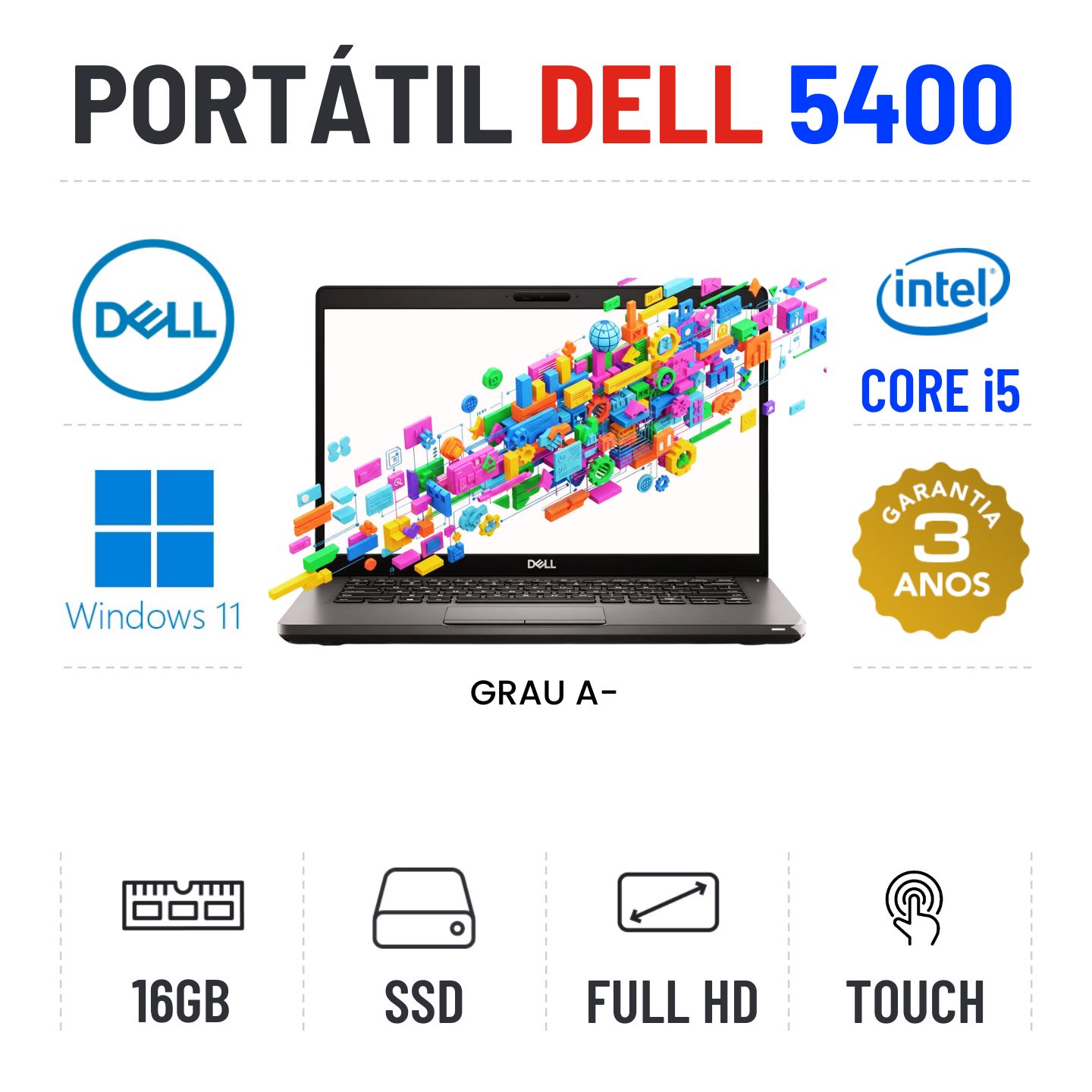 DELL LATITUDE 5400 | 14" TOUCH FULLHD | i5-8250U | 16GB RAM | 240GB SSDGrau A menos - Apontamentos estéticos ligeiros - 100% funcional