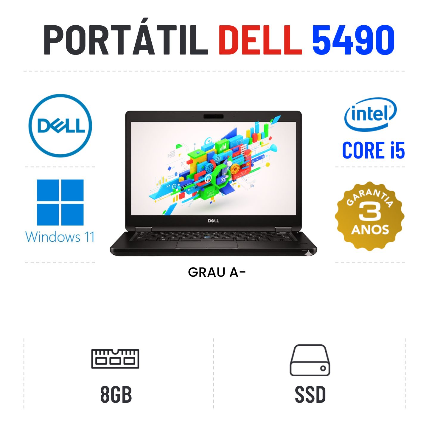 DELL LATITUDE 5490 | 14.1" | i5-7300U | 8GB RAM | SSDGrau A menos - Funciona como Novo. Apontamentos estéticos ligeiros. Preço comparado com novo