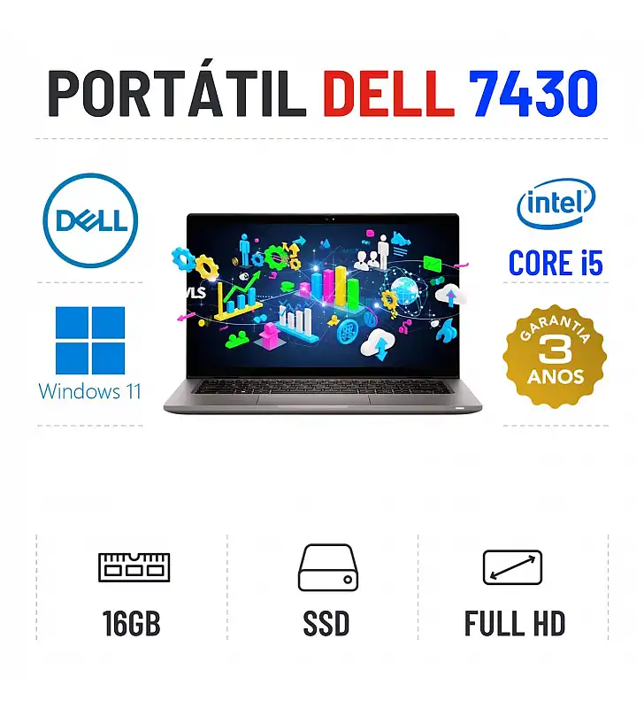 DELL LATITUDE 7430 | 14" FULLHD | i5-1245U | 16GB RAM | 240GB SSDEstado Grau A. Funciona como Novo. Recondicionado sem qualquer tipo de danos. Somente com ligeiros indicios de uso