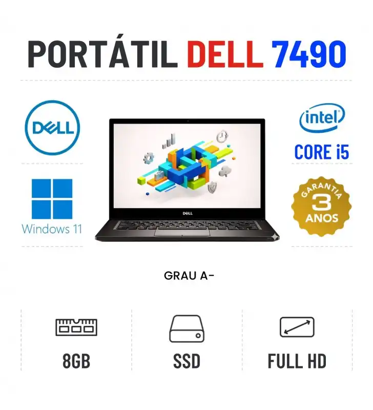 DELL LATITUDE 7490 | 14" FULLHD | i5-8350U | 8GB RAM | 240GB SSDGrau A menos - Funciona como Novo. Apontamentos estéticos ligeiros. Preço comparado com novo