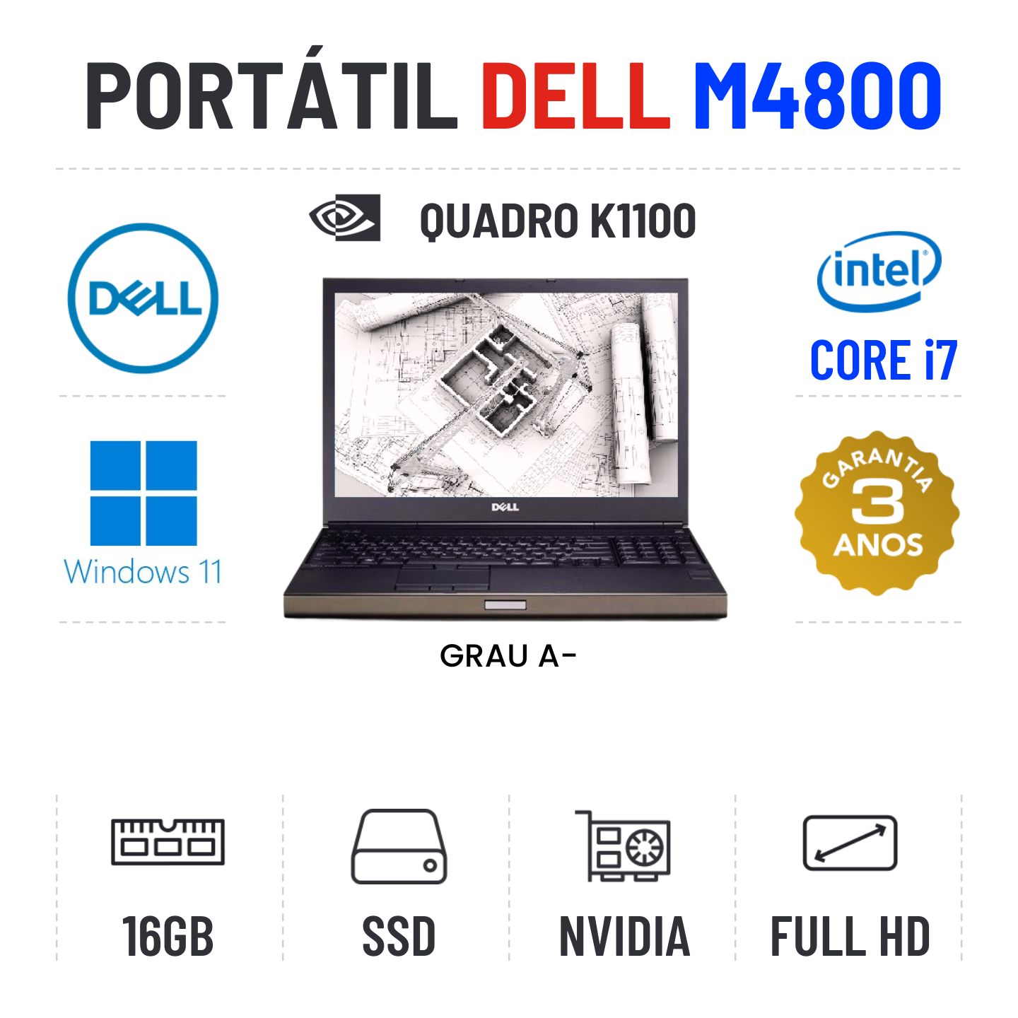 PODEROSA WORKSTATION DELL i7 Quarta Geração com 16GB de RAM , Disco SSD e gráfica Nvidia QUADRO K1100M!