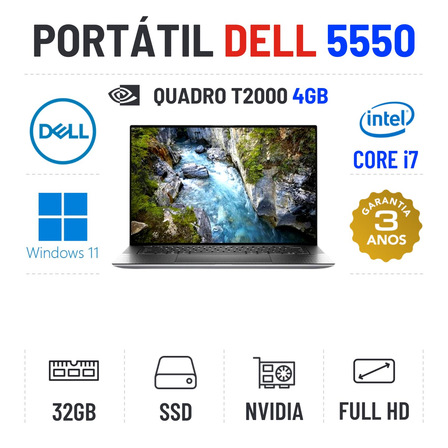 DELL PRECISION 5550 | 15.6" FULLHD | i7-10850H | 32GB RAM | 480GB SSD | QUADRO T2000 4GBEstado Grau A. Sem qualquer tipo de danos. Somente com ligeiros indicios de uso