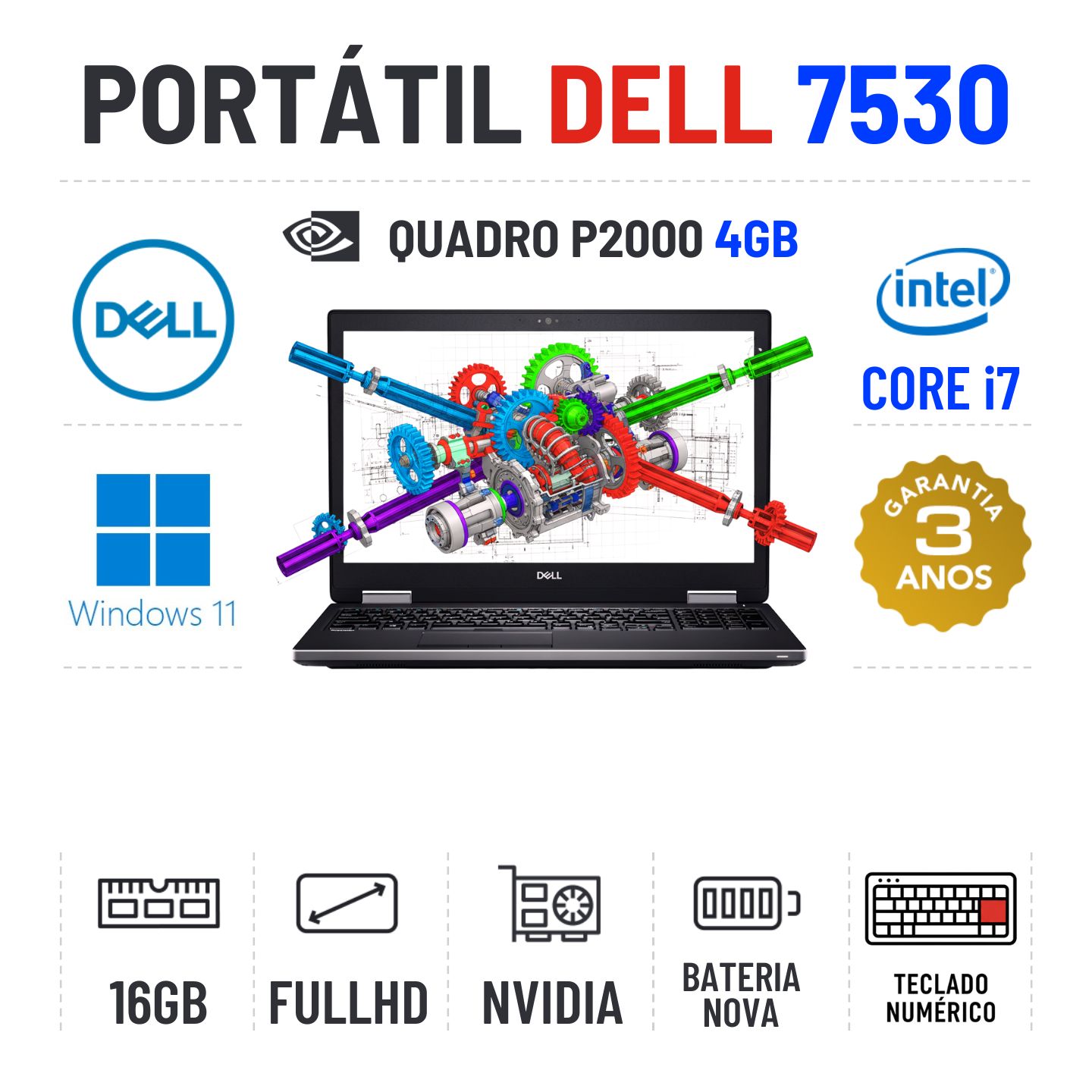 DELL PRECISION 7530 | 15.6" FULLHD | I7-8850H | 16GB RAM | 240GB SSD | QUADRO P2000 4GB | BATERIA NOVA | TECLADO NUMERICOEstado Grau A. Sem qualquer tipo de danos. Somente com ligeiros indicios de uso