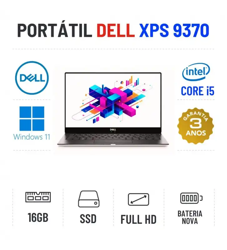 DELL XPS 13 9370 | 13.3" FULLHD | i5-8250U | 16GB RAM | 240GB SSD | BATERIA NOVAEstado Grau A. Funciona como Novo. Recondicionado sem qualquer tipo de danos. Somente com ligeiros indicios de uso