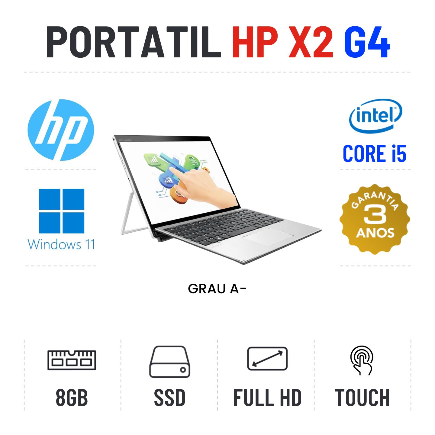 HP ELITE X2 G4 | 12.3" TOUCH FULLHD | I5-8265U | 8GB RAM | 240GB SSD
