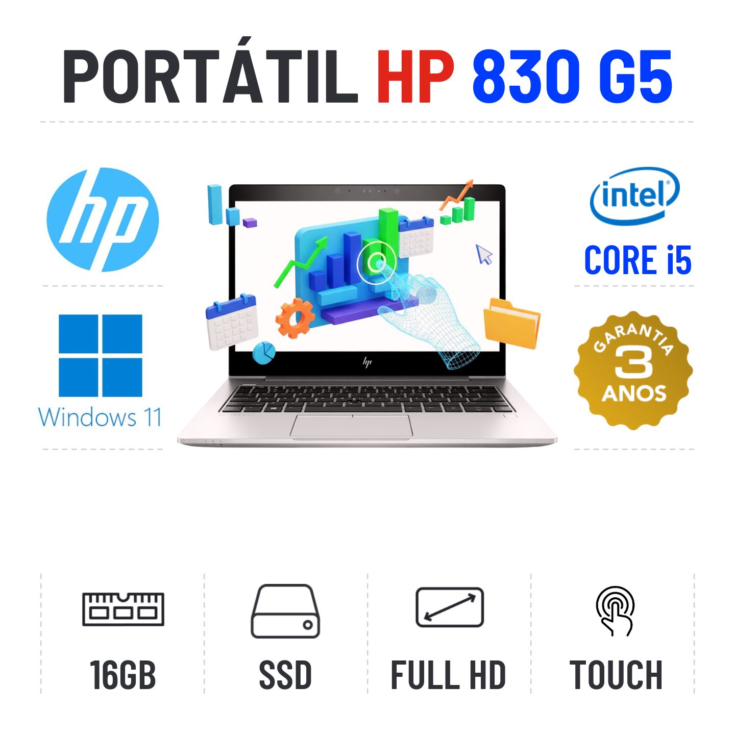 HP ELITEBOOK 830 G5 | 13.3" TOUCH FULLHD | I5-8250u | 16GB RAM | 240GB SSDEstado Grau A. Sem qualquer tipo de danos. Somente com ligeiros indicios de uso