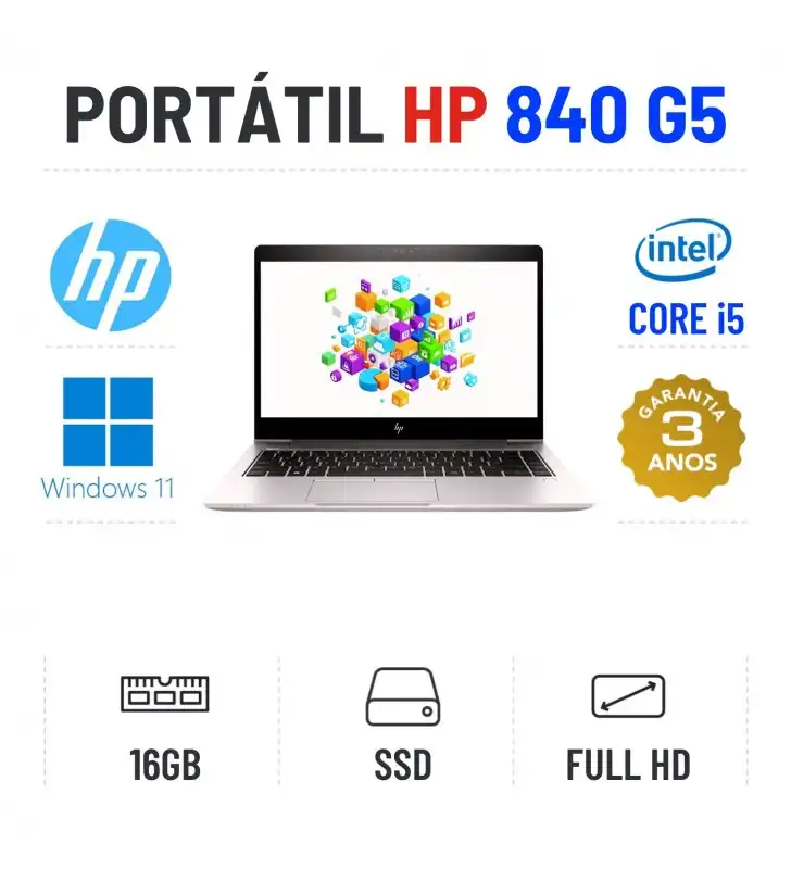 HP ELITEBOOK 840 G5 | 14" FULLHD | I5-8250U | 16GB RAM | 240GB SSDEstado Grau A. Funciona como Novo. Recondicionado sem qualquer tipo de danos. Somente com ligeiros indicios de uso