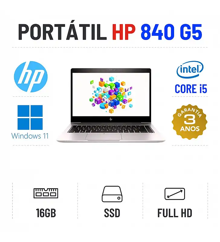 HP ELITEBOOK 840 G5 | 14" | FULLHD | I5-8250U | 16GB RAM | 480GB SSD