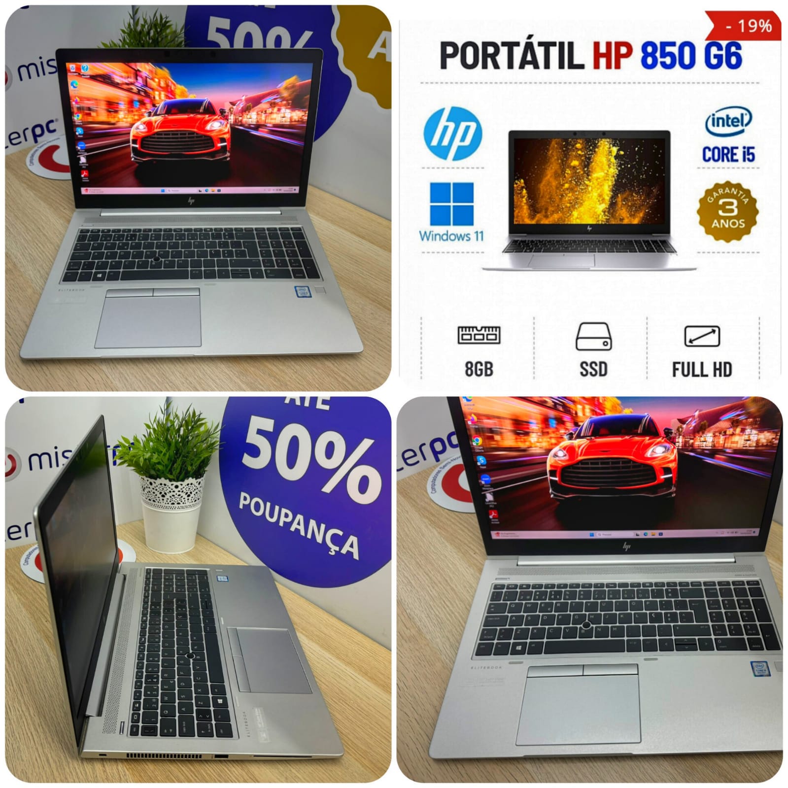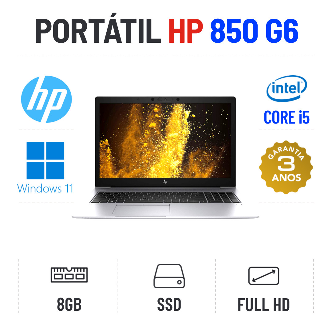 HP ELITEBOOK 850 G6 | 15.6" FULLHD | i5-8265u | 8GB RAM | 240GB SSDEstado Grau A. Sem qualquer tipo de danos. Somente com ligeiros indicios de uso