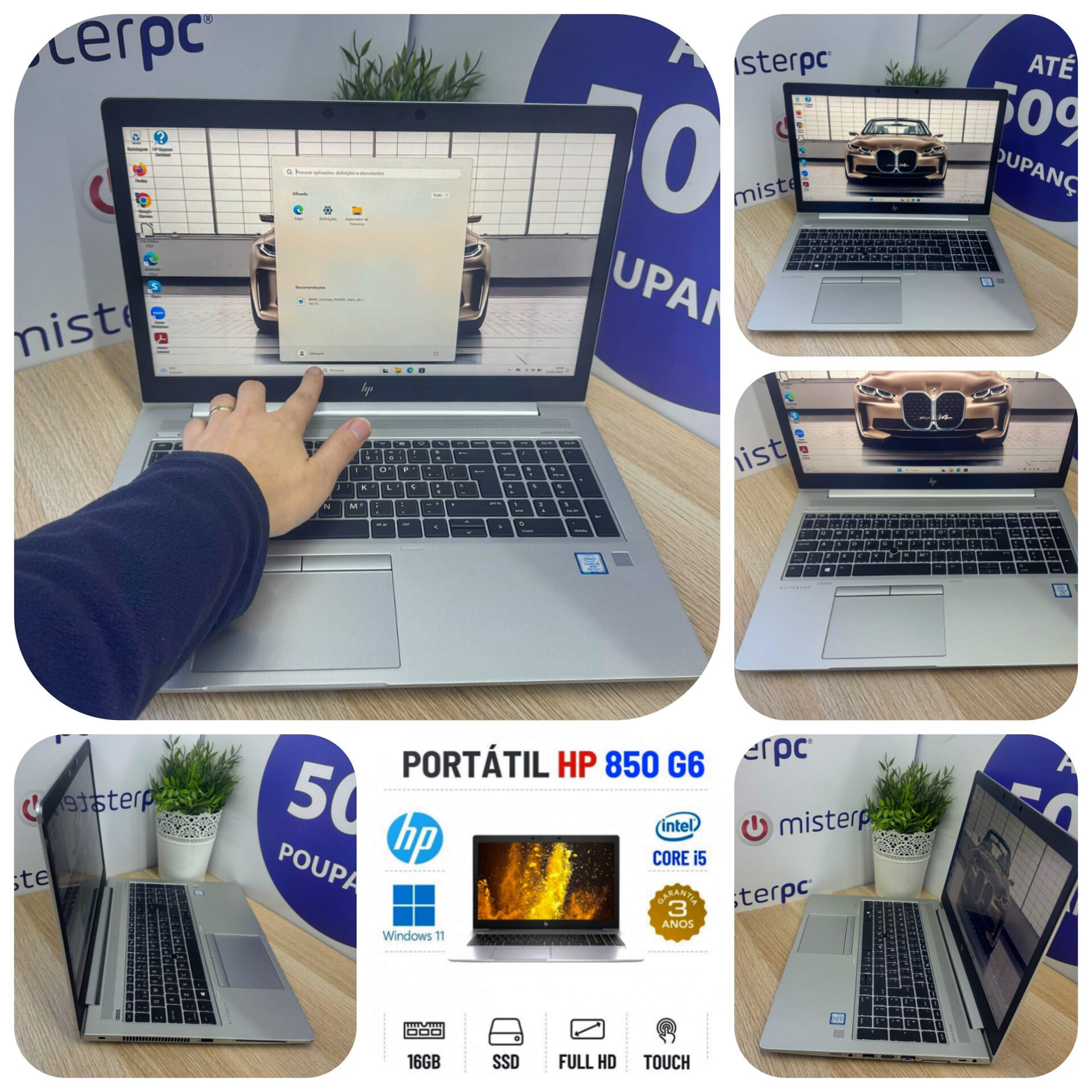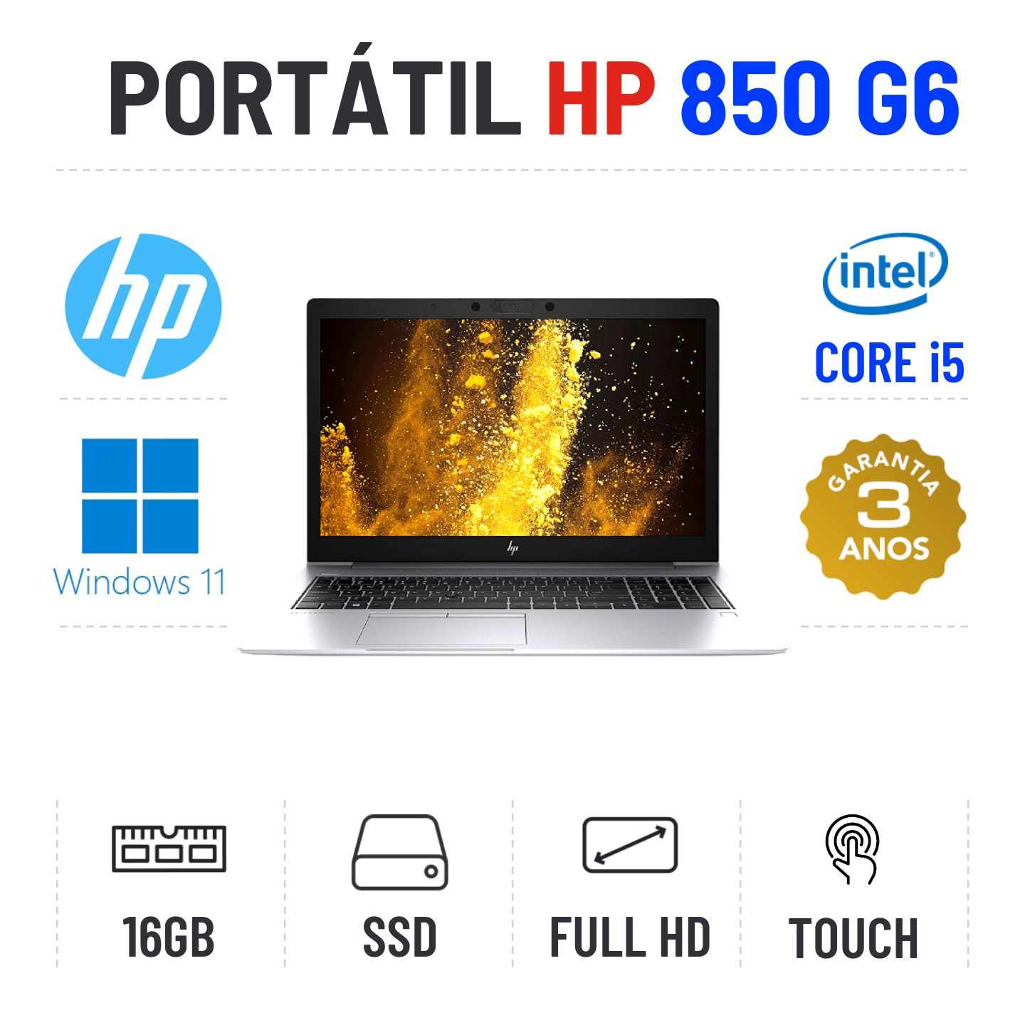 HP ELITEBOOK 850 G6 | 15.6" TOUCH FULLHD | i5-8365u | 16GB RAM | 240GB SSDEstado Grau A. Sem qualquer tipo de danos. Somente com ligeiros indicios de uso