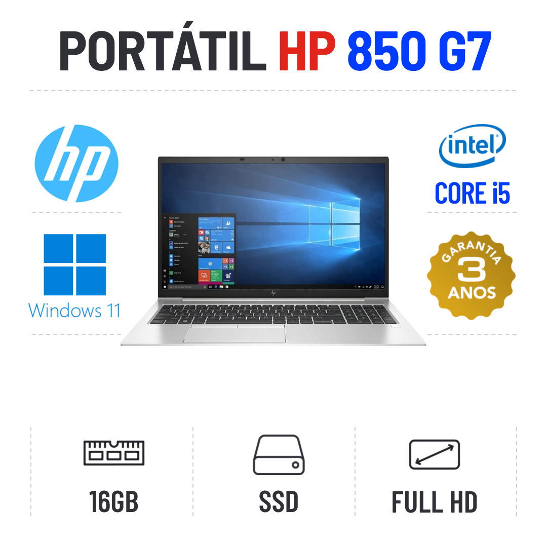 HP ELITEBOOK 850 G7 | 15.6" FULLHD | i5-10210u | 16GB RAM | 240GB SSDEstado Grau A. Sem qualquer tipo de danos. Somente com ligeiros indicios de uso