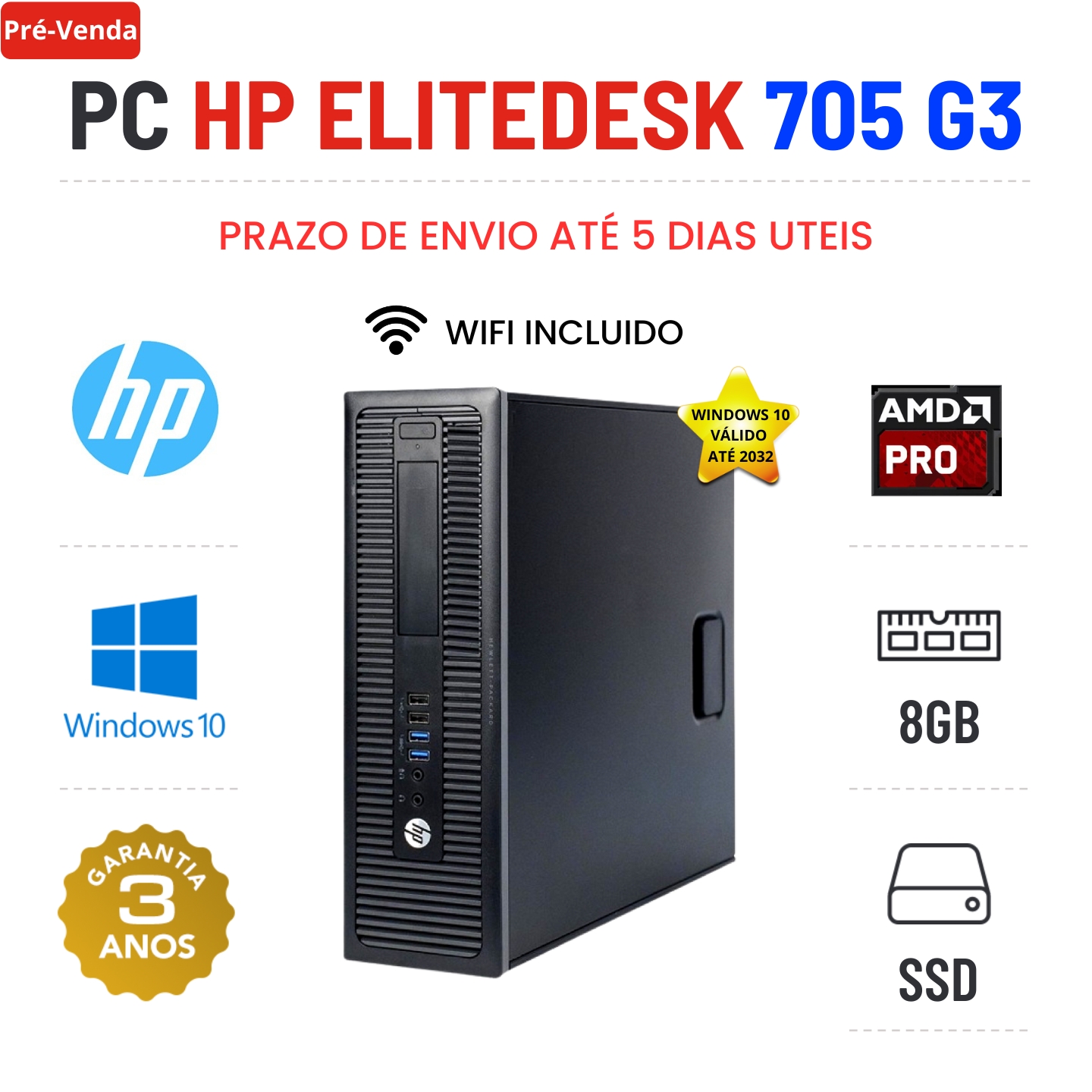 HP ELITEDESK 705 G3 SFF | AMD PRO A6-8570 | 8GB RAM | 240GB SSDEstado Grau A. Sem qualquer tipo de danos. Somente com ligeiros indicios de uso