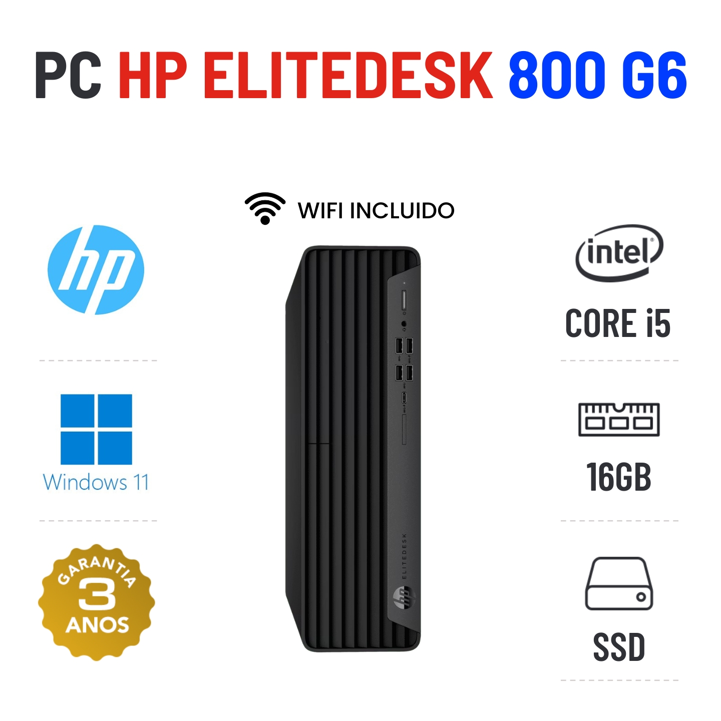 HP ELITEDESK 800 G6 SFF | i5-10500 | 16GB RAM | 240GB SSDEstado Grau A. Funciona como Novo. Recondicionado sem qualquer tipo de danos. Somente com ligeiros indicios de uso