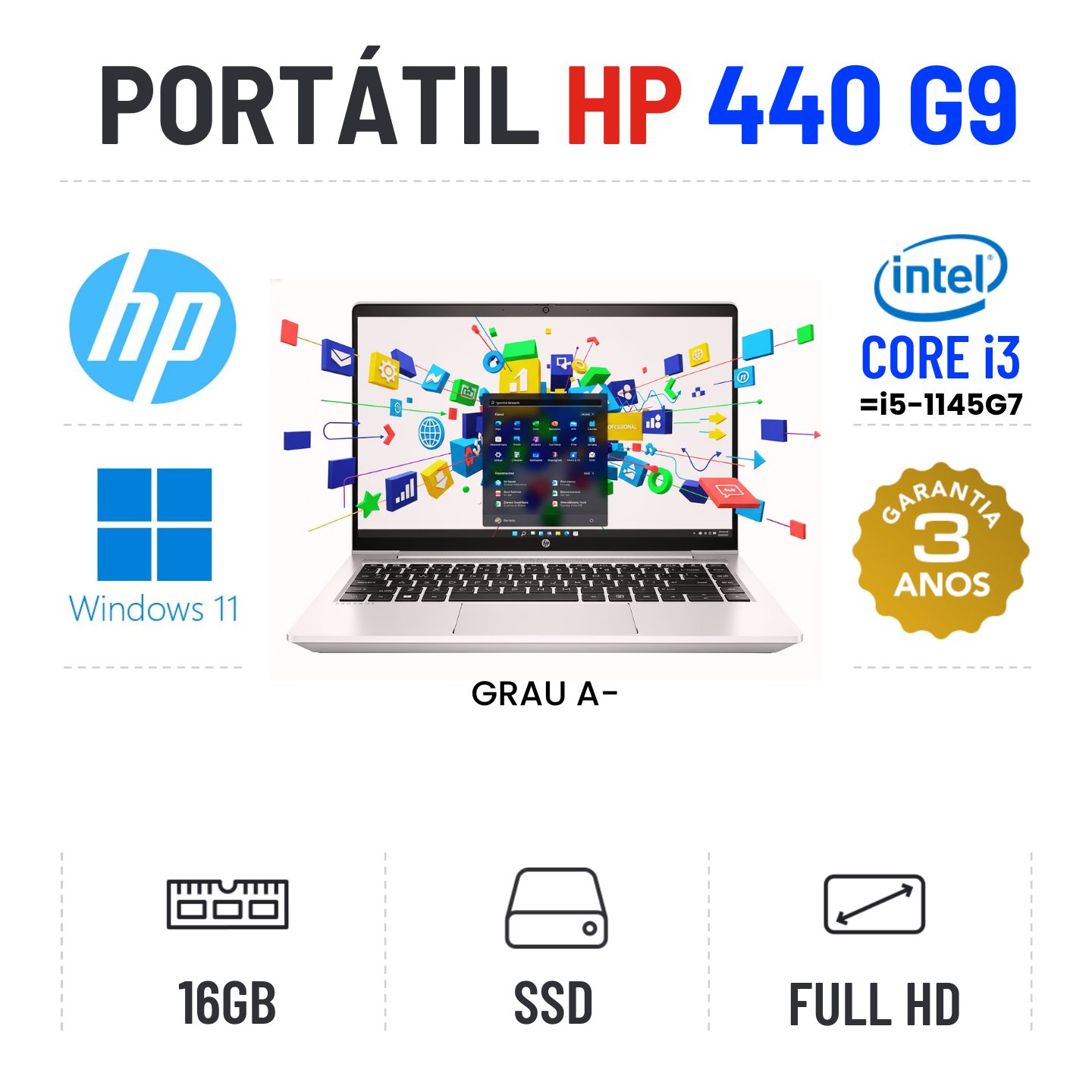 HP PROBOOK 440 G9 | 14" FULLHD | i3-1215U=i5-1145G7 | 16GB RAM | 240GB SSDGrau A menos - Apontamentos estéticos ligeiros - 100% funcional