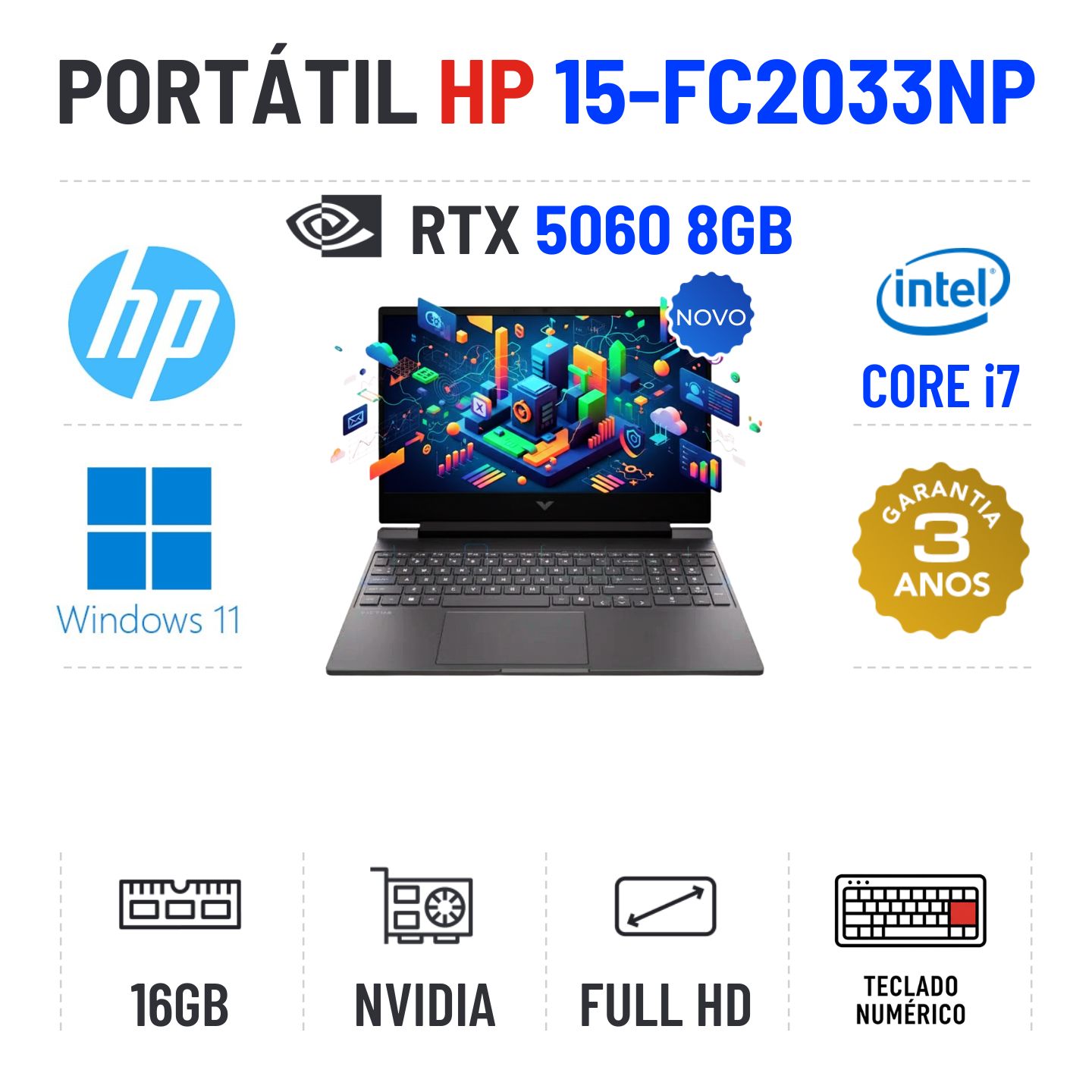 HP VICTUS 15 | 15.6'' FULLHD 144Hz | i7-13620H | 16GB RAM | 960GB SSD | NVIDIA RTX5060 8GBNovo com 3 Anos de Garantia