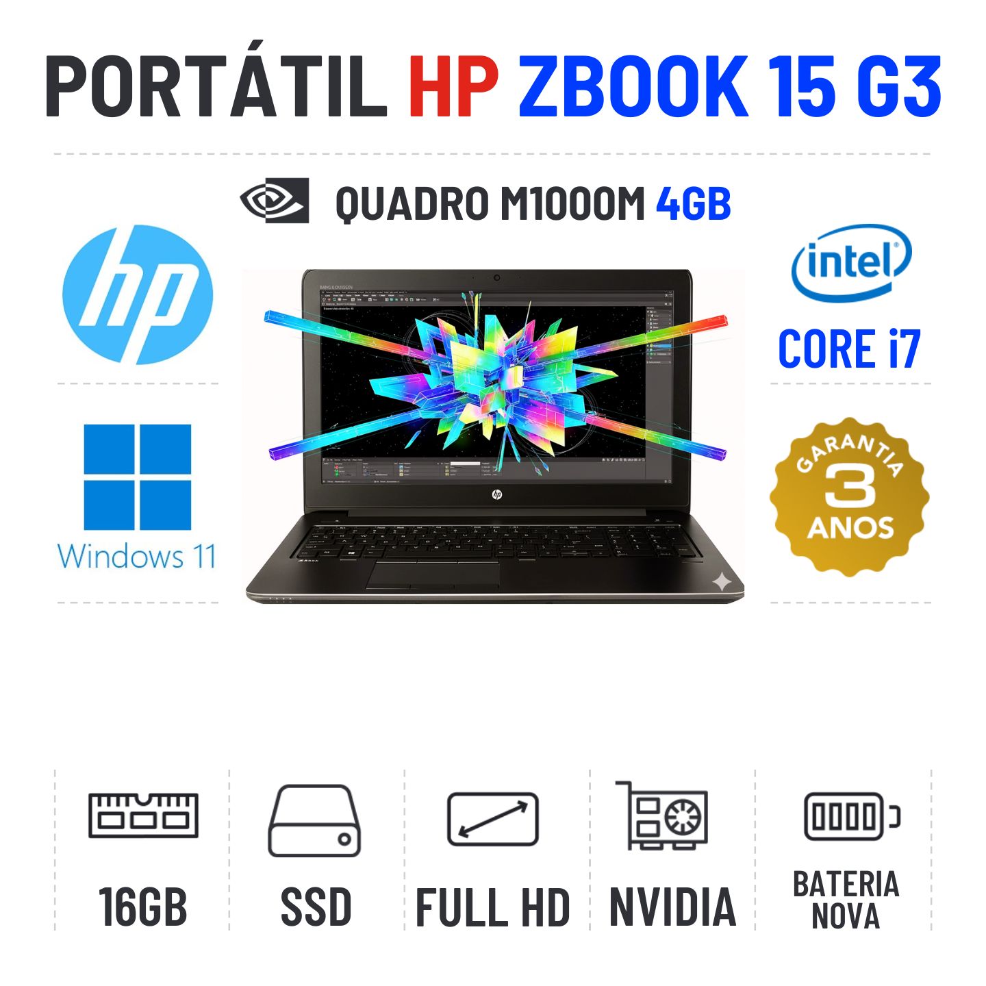 HP ZBOOK 15 G3 | 15.6" FULLHD | I7-6700HQ | 16GB RAM | 480GB SSD | QUADRO M1000M 4GB | BATERIA NOVAEstado Grau A. Sem qualquer tipo de danos. Somente com ligeiros indicios de uso